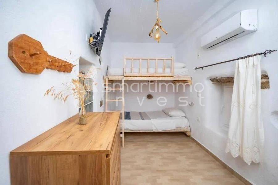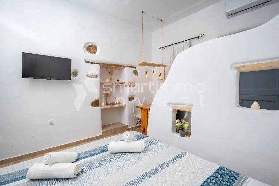 For sale: fully renovated and furnished 67 sqm apartment located in Galini, Naxos, in a peaceful and strategic location just 6 km from the port of Naxos and only 2 km from Ammitis beach. The property was renovated in 2018 and is offered ready for immediate use, either as a private residence or as a highly attractive investment for short-term rental platforms such as Airbnb and Booking. The property stands out for its functional layout, as it is divided into two independent units: a studio of approximately 27 sqm and a separate two-room apartment of 40 sqm. This configuration offers flexibility of use and strong investment potential with multiple income streams. The apartment is located on the ground floor, is bright, and features a veranda and access to a garden, creating a pleasant living environment with authentic Cycladic charm. It includes air conditioning, autonomous electric heating, a modern kitchen, and fully equipped living spaces. Being fully furnished, it is immediately ready for use without additional investment. This property represents an excellent opportunity for both a holiday home and a high-yield investment in the growing Naxos market.