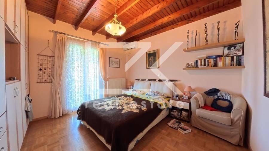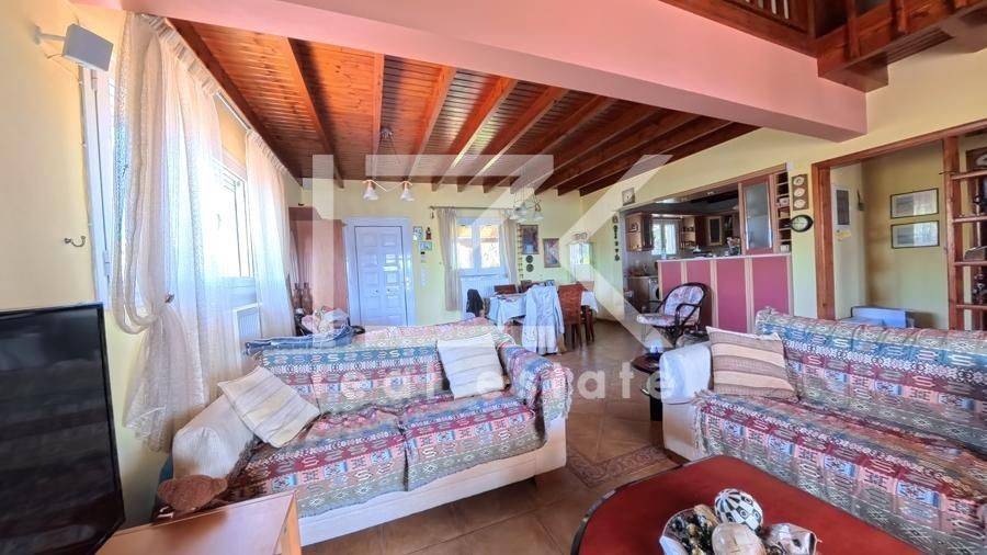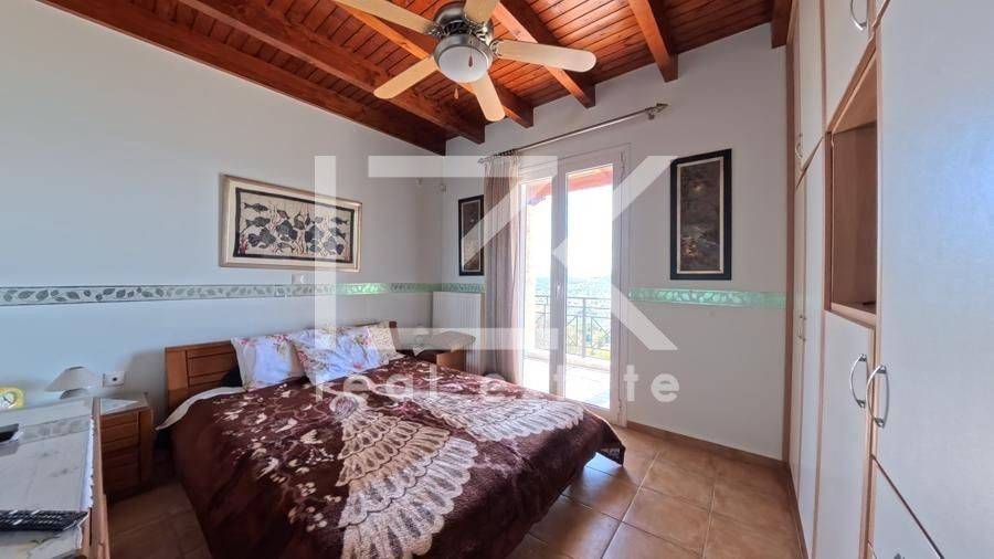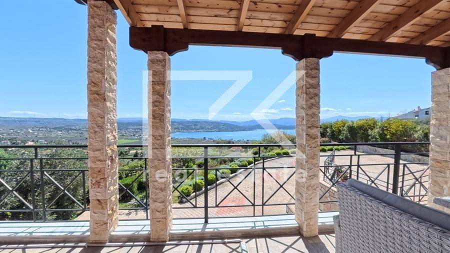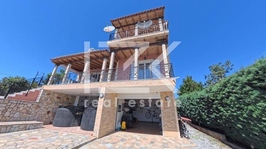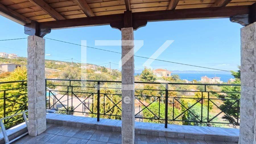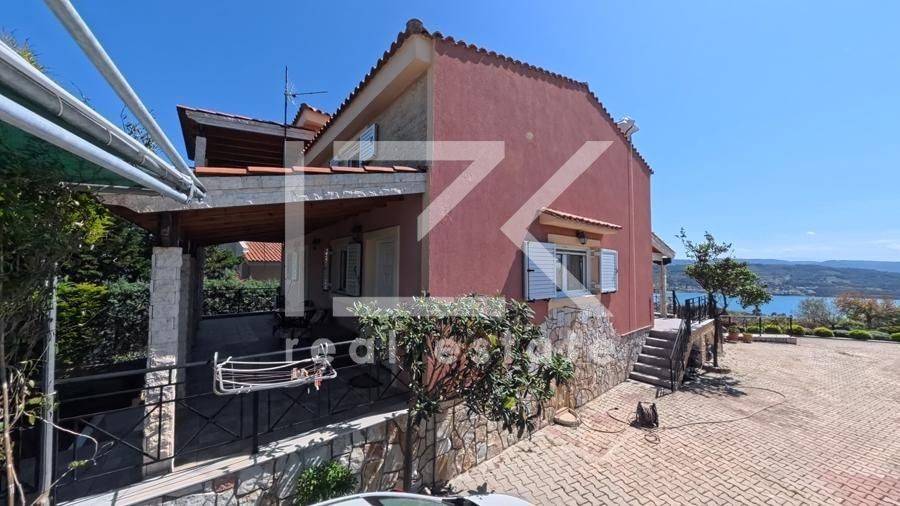 Luxury Detached House 240 sq.m. with Panoramic Sea Views & Photovoltaic Income An exceptional detached residence of 240 sq.m., built in 2004 and fully renovated in 2017, is offered for sale in a privileged location with unobstructed and permanently secured views of the Theologos bay and the Evoikos Gulf. The property stands out for its high construction quality, advanced infrastructure, and energy efficiency, making it ideal for both private residence and investment purposes. Layout Ground Floor Living and dining area with energy-efficient fireplace Functional open-plan kitchen 1 Bedroom 1 Bathroom First Floor 2 Bedrooms 1 Bathroom Attic space All areas open onto spacious verandas with panoramic sea views, while the elevated position of the plot ensures that the view will remain unobstructed. Outdoor Areas The landscaped garden features: Over 200 ornamental plants and 11 fruit trees Automated irrigation system with computer control Stone-paved pathways and outdoor lighting throughout 3 covered wood storage areas Automated garage gate The property is fully fenced with reinforced concrete and a natural cypress hedge, offering privacy and security. Construction & Infrastructure Fully anti-seismic construction, founded on granite rock Reinforced structural system Exterior and selected interior surfaces finished with natural stone Thermal insulation (10 cm external insulation system) Central oil heating with radiators Energy-efficient fireplace (installed in 2018) Boiler and hot water system Technology & Equipment Installed photovoltaic system (4.95 kW) operating since 2011, generating approximately €400/month tax-free income Satellite and digital TV system with amplifier Full alarm system with sensors Three-phase underground electricity supply Central water filtration and softening system Additional Spaces Ground-level auxiliary space 52 sq.m. (garage/storage) with automatic door Water tanks with total capacity of 20 tons and pressure system Boiler room and additional utility spaces Additional Advantages Sold fully furnished and equipped Dual-aspect plot with open views on both sides Possibility to construct a swimming pool High level of privacy within a natural environment A unique property combining quality construction, energy autonomy, and a prime location, offering both an exceptional living experience and a steady income stream. Ideal for discerning buyers seeking a complete and high-value investment.