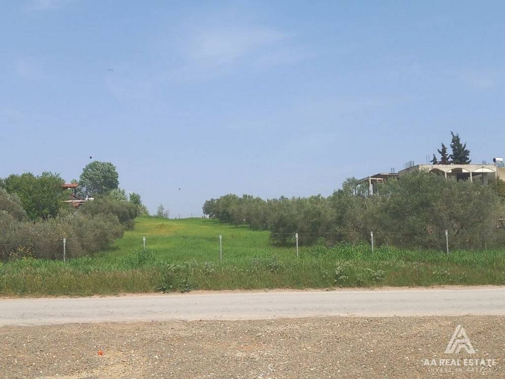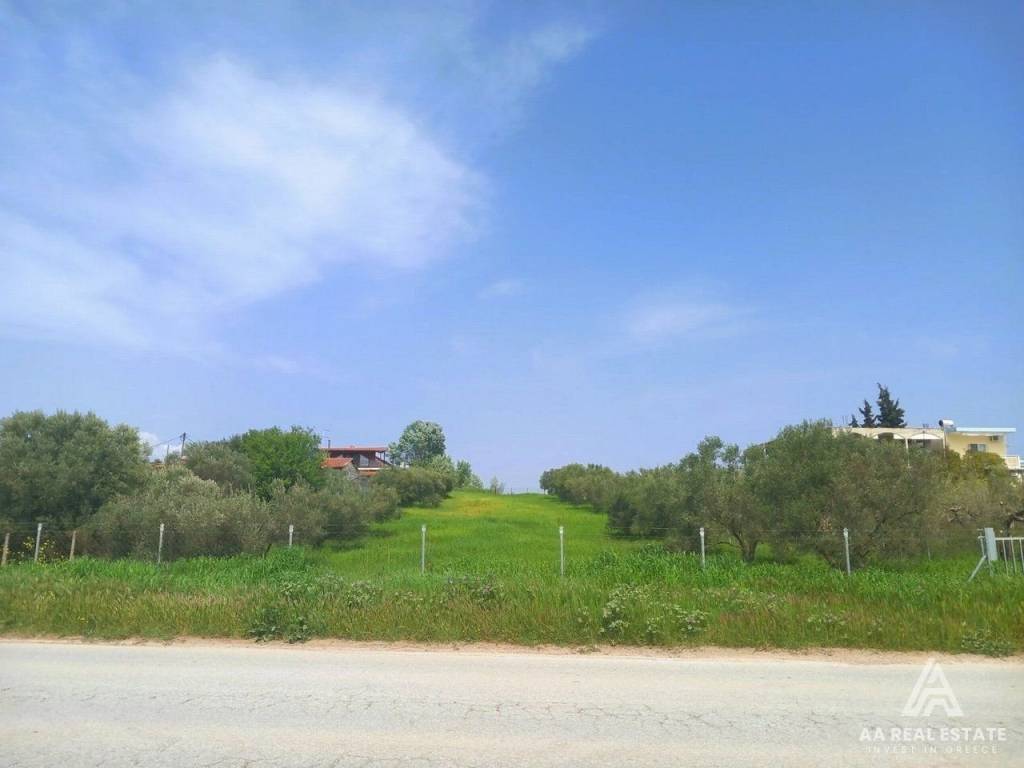 DIONYSIO BEACH MOURIES HALKIDIKI - FOR SALE a complete and buildable plot of land with a total area of 2,000 sq m. 300 meters from the beach and a fantastic unobstructed view of the sea. The property is complete and buildable, building capacity of 500 sq m. Asphalt access. It has a fence and olive trees. It is located in an extremely privileged location in the settlement, in front of an area intended for a park, next to Dionysiou Beach where there are shops, cafes and taverns. 30 minutes from Thessaloniki airport. 9 minutes from Nea Moudania where there are shops, clinics, services, schools, etc. It is an ideal choice for the construction of a country house and also a tourist resort. distance from the beach 300, investment, zone vacation, view, inclination inclined, buildable area 500, buildable, orientation westmeridian, access asphalt, facade