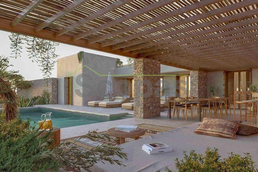 House for sale by SCOPAS REALESTATE and CONSTRUCTION. Located on the eastern side of Paros, in the picturesque village of Drios, this exceptional three-level residence of 206 sq.m. is available for sale—an ideal combination of comfort, modern elegance and privileged location. The property features 5 spacious bedrooms, each with its own private bathroom, 1 w/c, a fully equipped kitchen, a bright living room, a dining area, a separate guest house, and a convenient laundry/storage room. Every space has been carefully designed to offer privacy, relaxation and high-quality living. Outdoors, the private swimming pool, jacuzzi, landscaped garden, BBQ area, large terraces and comfortable seating areas create the perfect setting for unforgettable moments. The property also includes two parking spaces and enjoys a southeast orientation with stunning views over the Aegean Sea and the Paros–Naxos strait. This residence is ideally suited for permanent or holiday living and offers an excellent opportunity for tourist exploitation, thanks to its prime location and comprehensive features. Access is easy via a paved road, with only a few meters of dirt road. Electricity, water and internet are available nearby. Distances: • 300 m from the famous Golden Beach • 15.6 km from Paros Airport • 21 km from the Port The broader area of Drios offers a peaceful, high-quality environment, known for its beautiful beaches, traditional seaside tavernas, a small marina, and the natural beauty of Paros' eastern coastline. Nearby lie popular destinations such as Golden Beach, Pounda and New Golden Beach, making the location ideal for those seeking both tranquillity and a cosmopolitan feel. A high-quality property that meets every need—whether for private enjoyment or investment purposes. The information and details of the property have been provided based on data supplied by the owner. - The location marked on the map does not correspond to the actual address of the property. - When indicating the property, a form of ID or VAT number is required, in accordance with Law N.4072/2012 - Official Gazette 86/A/11-4-2012.