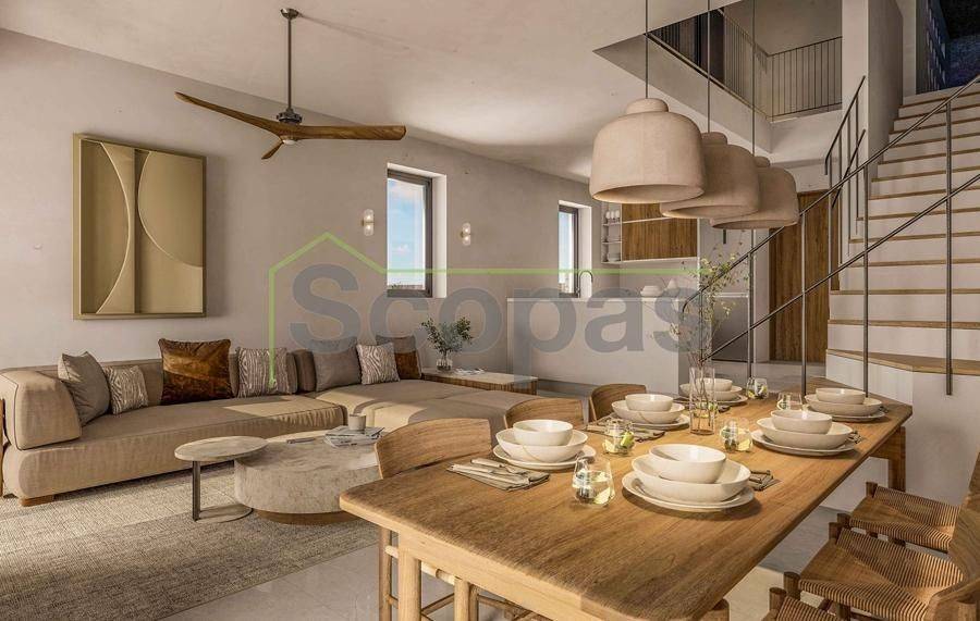 House for sale by SCOPAS REAL ESTATE and CONSTRUCTION. Aspro Chorio – Under Construction 141 m² Detached House with Sea View & Private Pool For sale: a modern detached house in Aspro Chorio, Paros, currently under construction and scheduled for completion in October 2026. This contemporary residence combines high aesthetics with Cycladic architecture, privacy, and unobstructed views of the Aegean Sea. Plot Size: 300 m² Property Features • Two master rooms • One additional bedroom • Bathroom • Open-plan living and dining area • Fully equipped kitchen with electrical appliances • Storage room • Spacious veranda with panoramic sea views Outdoor Areas • Private swimming pool • Garden • Private parking space • Asphalt road access Equipment & Amenities • Air-conditioning (cooling–heating) in all areas • Solar water heater This residence offers bright, comfortable interiors and high construction quality. It is ideal for permanent living, holiday use, as well as tourist investment, making it a highly attractive opportunity in a location with increasing demand. Distances • 1.3 km from Lolantonis Beach • 11.2 km from Paros Airport • 17.9 km from the port Additionally, nearby are the beaches of Trypiti, Glyfa, Faragas, and Drios, while Aliki provides a variety of restaurants, cafés, shops, and supermarkets. The information and characteristics of the properties have been entered based on the information and data provided by the principal. -The point on the map does not correspond to the real address of the property. -When indicating the property, a identity card or VAT number is necessary, according to Law N.4072/2012 - Official Gazette 86/A/11-4-2012.