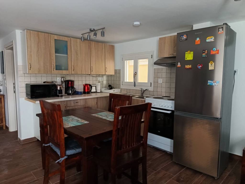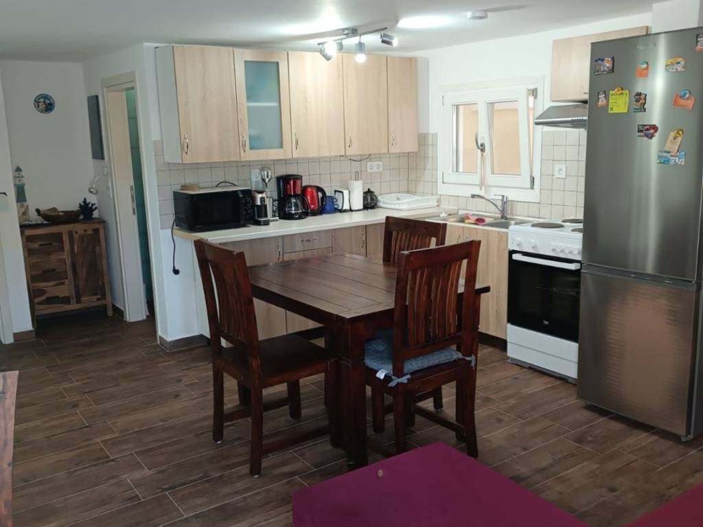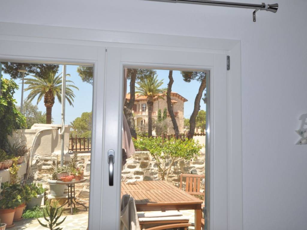 The house is located in Poseidonia, Syros across from Tsiropina Mansion. It is fully furnished and has a conventional sized electric stove/cooker, refrigerator, and washing machine. It also has a microwave, espresso machine, a coffee maker, etc. It has a reverse osmosis water system for potable water. In front of the apartment there is a patio with an unhindered view of Tsiropina Mansion. The apartment has a telephone line to connect to.
