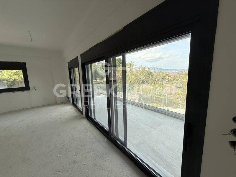 Spata, Hristoupoli - Apartment 114sqm bedrooms 3, 1st, penthouse, year built 2024, energy class A, living room, kitchen, 2 bathrooms, wc, heating type: autonomous (heat pump), air condition, parking, mountain view, storage space 13sqm, solar heater, fireplace, elevator, private terrace, terrace 90sqm, aluminum frames, marble floors, secure door, alarm, luxurious.