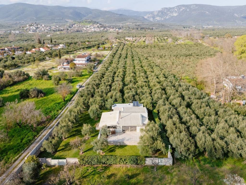 A unique property in an idyllic, seaside location in Achinos, Fthiotida. Set on an expansive 35,000sq.m. plot, the estate spans 293sq.m. of living space and is enriched by 320 olive trees and 100 fruit trees, along with two private water wells. The main residence boasts an open-plan living and dining area with a striking double-sided fireplace, an open-plan kitchen, and an additional kitchenette. It features 1 master ensuite bedroom, 3 additional bedrooms, and 2 bathrooms. The second residence consists of a living room, kitchen, 1 bedroom, and 1 bathroom. The property also includes a 50sq.m. auxiliary building, comprising a storage area and staff quarters. Outdoors, the beautifully landscaped grounds feature a large garden, inviting veranda, multiple seating areas, BBQ facilities, and a traditional wood-fired oven. The property has an additional building capacity of 800sq.m., offering significant development potential, and is within walking distance of the sea. A remarkable property in one of Fthiotida’s most picturesque locations.