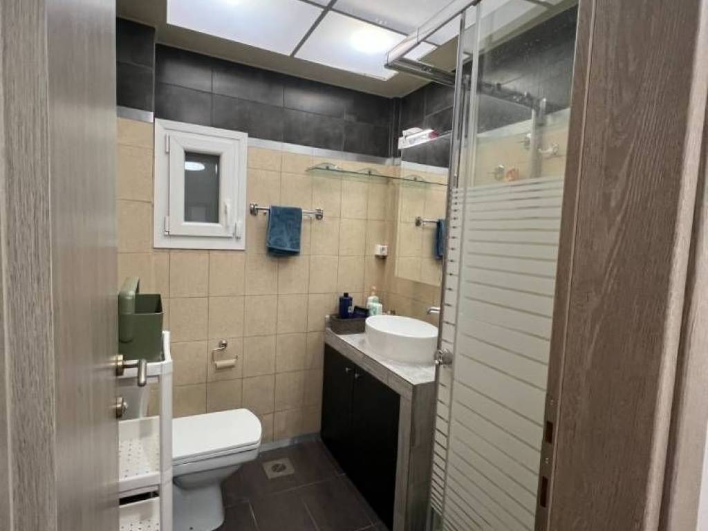 The apartment consists of 2 bedrooms, a living–dining room, a kitchen, a bathroom, and a storage room. Additional features include an elevator, autonomous natural gas heating & air conditioning, synthetic window frames with double glazing, a security door, and tile & wooden flooring.