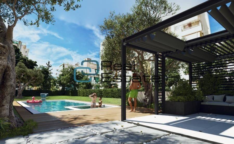 Palaio Faliro, Apartment For Sale, 105 sq.m., Property Status: under construction, Floor: 6th, 1 Level(s), 3 Bedrooms 1 WC, Heating: Autonomous - Natural Gas, Building Year: 2024, Energy Certificate: Α++, 1 parking(s), Floor type: Wooden floors + Marble, Type of door frames: Aluminum, Features: Elevator, Security door, CCTV, Storage room, Fireplace, Double Glazed Windows, Window Screens, Balconies, Luxury, Airy, Roadside, Bright, Stadium, Grass, Automatic Watering, Trees, Swimming pool, Back yard (Garden), Price: 540.000€. CnC Real Estate, Tel: 2109845942, email: info@cnc-realestate.gr