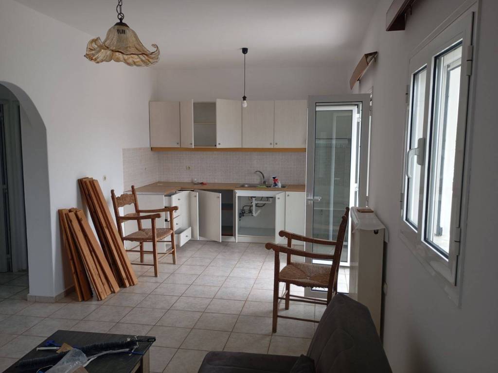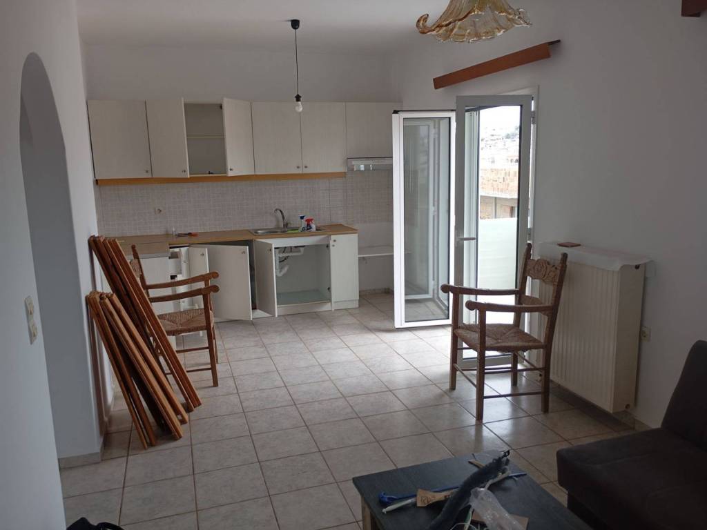 (TREIS VAGIES) Semi-furnished, 3rd floor penthouse apartment of 60 sq m, in excellent condition. Offers an open plan kitchen-living room, two bedrooms, loft, small storage room, large balconies, autonomous heating, internet, with PPC meter. It has been insulated. No shared utilities. Pets are not allowed. Energy class D.