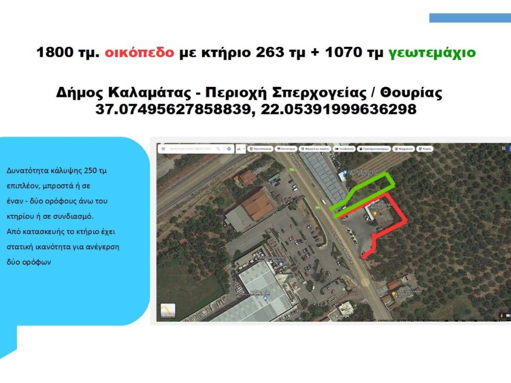 Έναντι πολυκαταστήματος Praktiker 263 τμ σε 1800 οικόπεδο και 1070 αγροτεμάχιο, νοικιασμένα .
