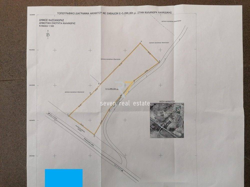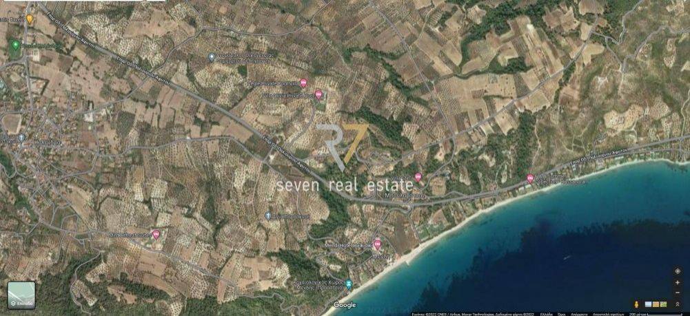 Kassandra, Kalandra: Angular parcel 5099sq.m. with a 45m facade. It is located next to the Paliouri-Afytos provincial road and is 1000 meters from the beach, suitable for erection of housing. Price 100.000 € Property Code: #38573