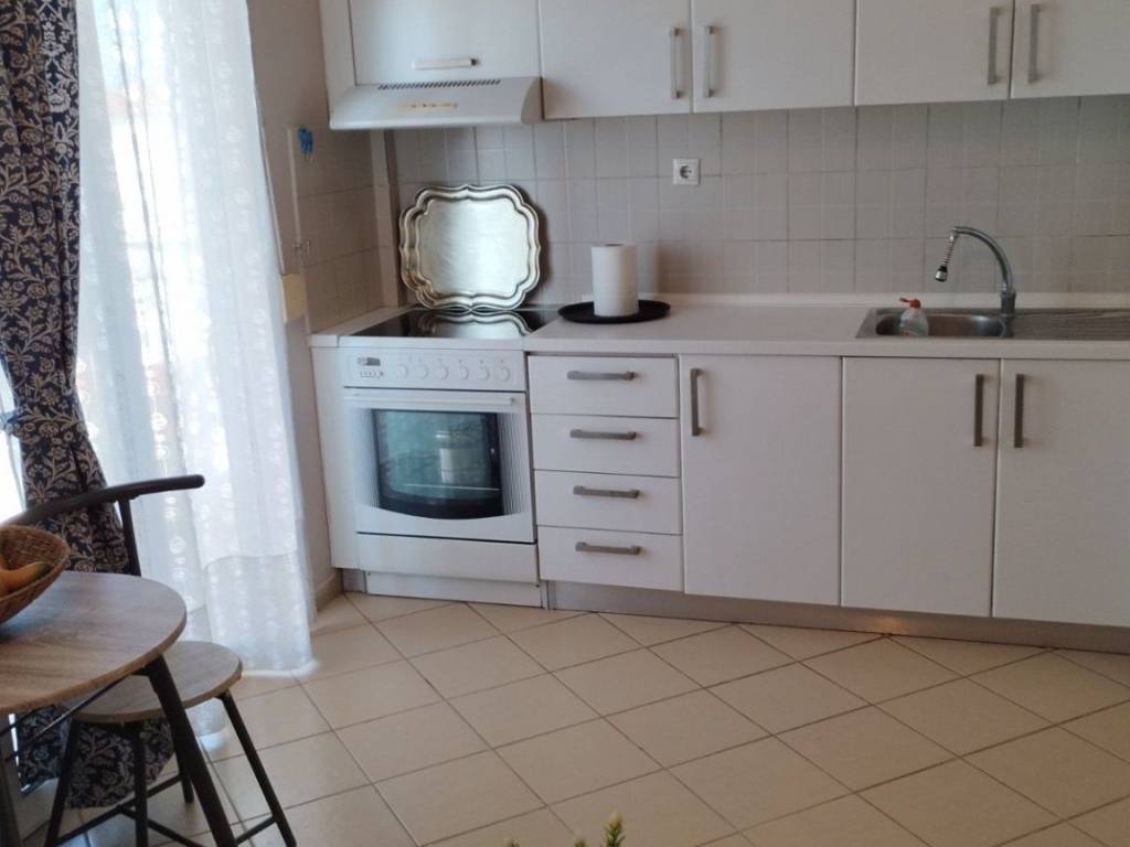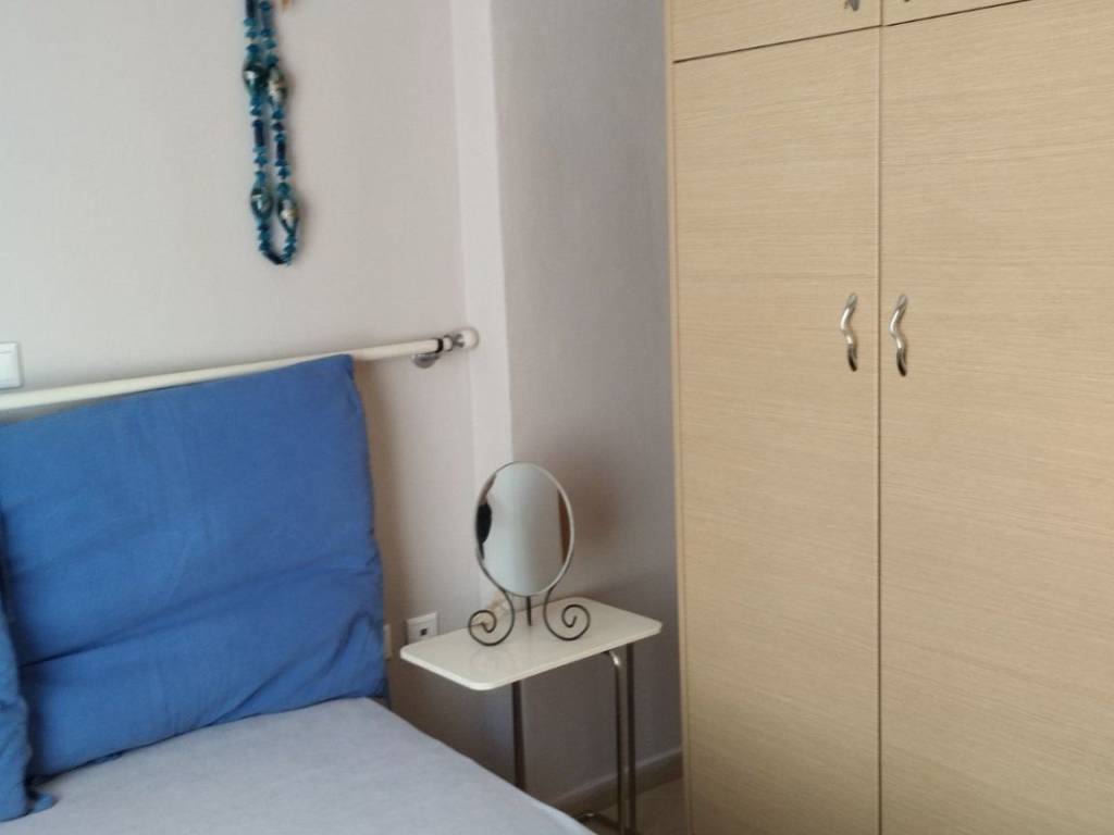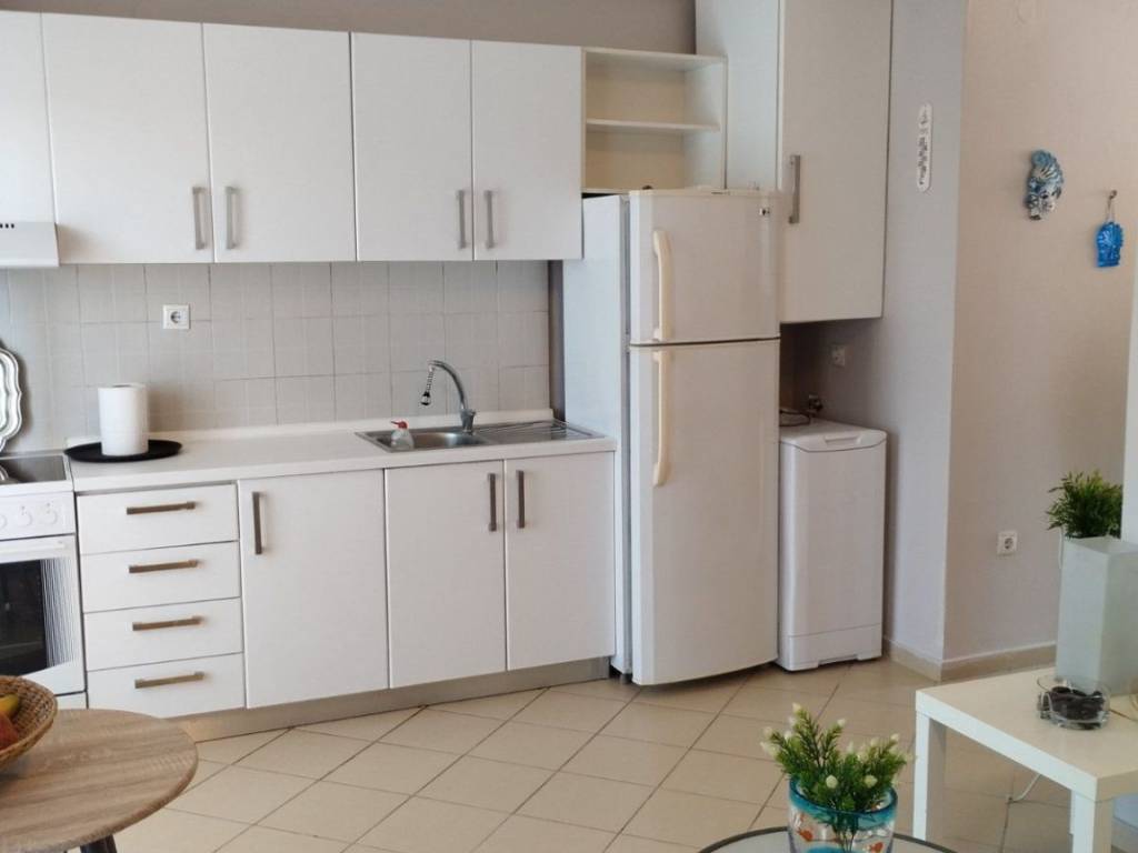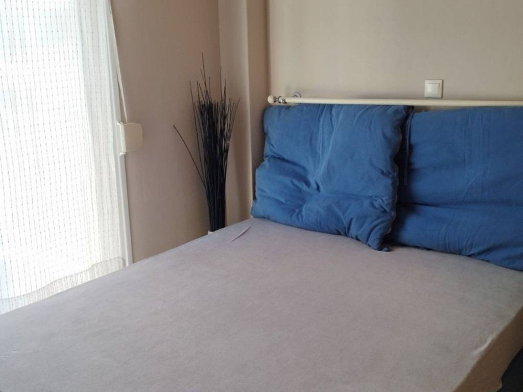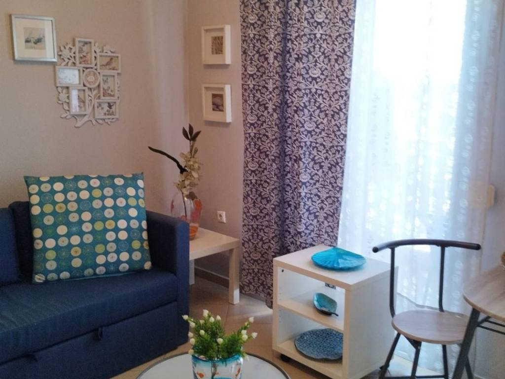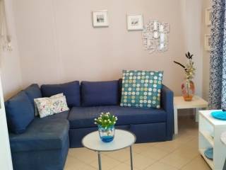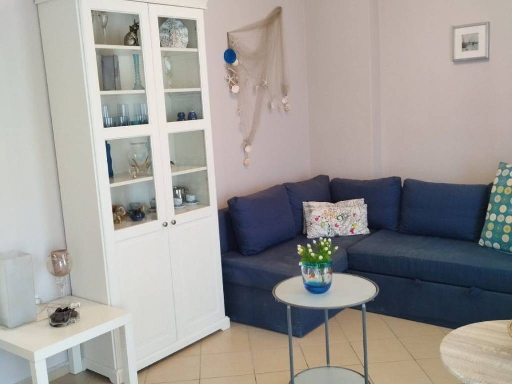 Studio 40 sqm with air-condition. It has a separate bedroom, a kitchen and a living room and a bathroom. A big balcony with a view and a barbecue. Fully furnished with everything you need. For the whole year it's 4500€ and for season it's 3800€.