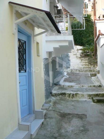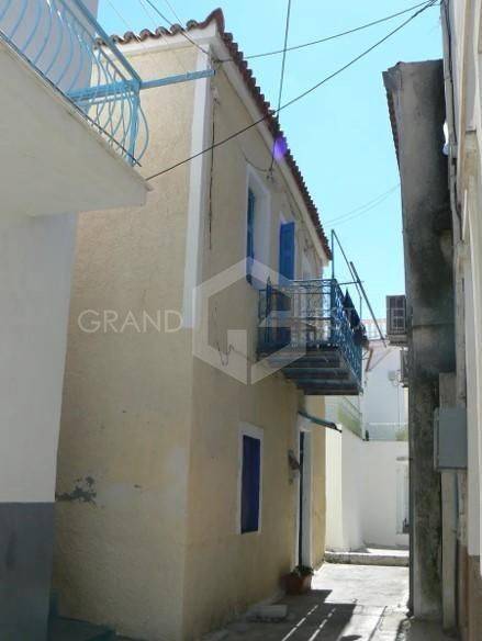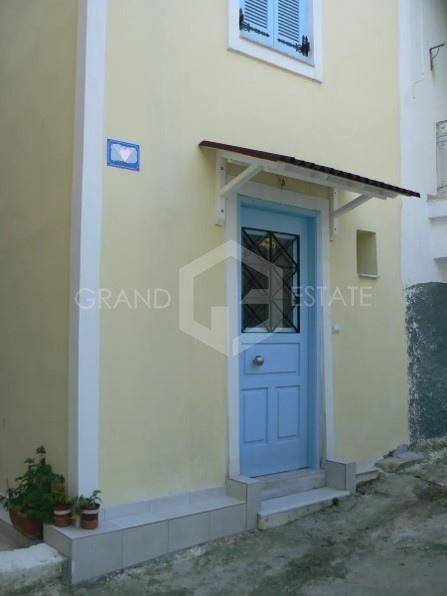 Poros, Hora - Maisonette 52sqm plot 54sqm, fully furnished, bedroom, levels 2, ground floor - 1st, fully renovated, year built 1920, renovation year 2022, energy class E, 2 living rooms, kitchen, bathroom, wc, heating type: autonomous (electricity), dual aspect apartment, luminous, corner, sea view, frontage, fireplace, balconies, wood floors, internal staircase, residential zone, eastern orientation, access from asphalt, investment property, special offer, close to super market (up to 200m), close to entertainment (up to 200m), close to bus stop (up to 100m), close to sea (up to 100m), close to square (up to 200m), close to banks (up to 200m).