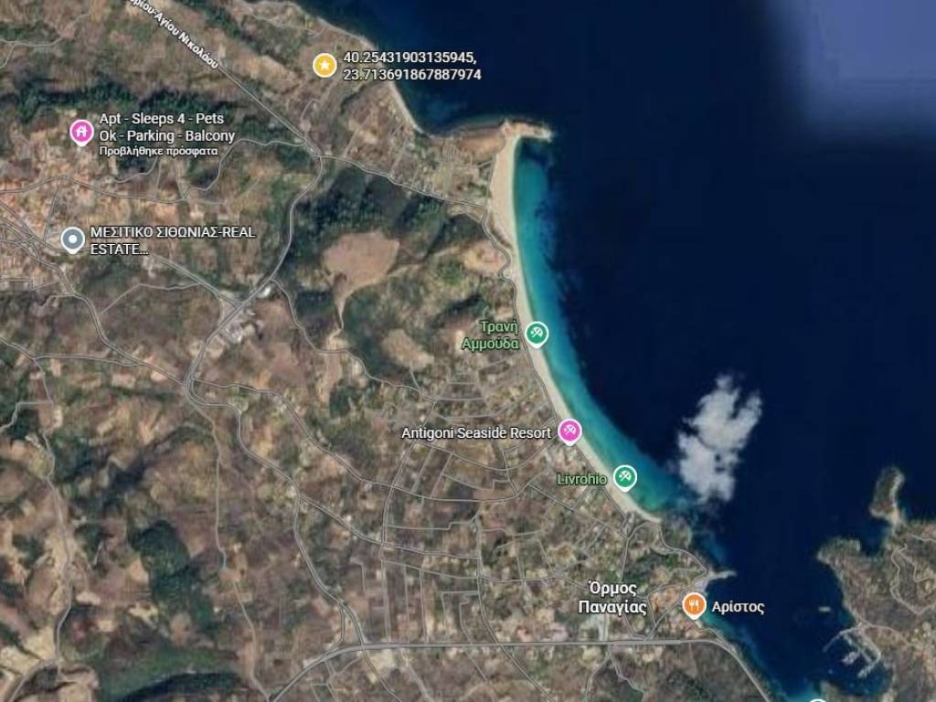 Two Adjacent Plots for Sale in Agios Nikolaos, Halkidiki Located in one of the most charming and authentic areas of Halkidiki, these two neighboring plots are available for sale on a gently sloping terrain, offering stunning panoramic views of the crystal-clear Singitic Gulf and the majestic Mount Athos ✨ Building capacity up to 400 sq.m., with additional potential for basements and attic spaces, ideal for private residences or tourist accommodations. The landscape beautifully blends lush greenery with the deep blue sea, creating an environment of peace, relaxation, and natural beauty. Excellent investment opportunity in a popular and steadily growing tourist destination. If you are looking for a place where nature dominates and the view is truly breathtaking, this is the perfect choice! Contact: For more information or to schedule a visit, please contact +306974413943 or email mesitikosithonias@gmail.com
