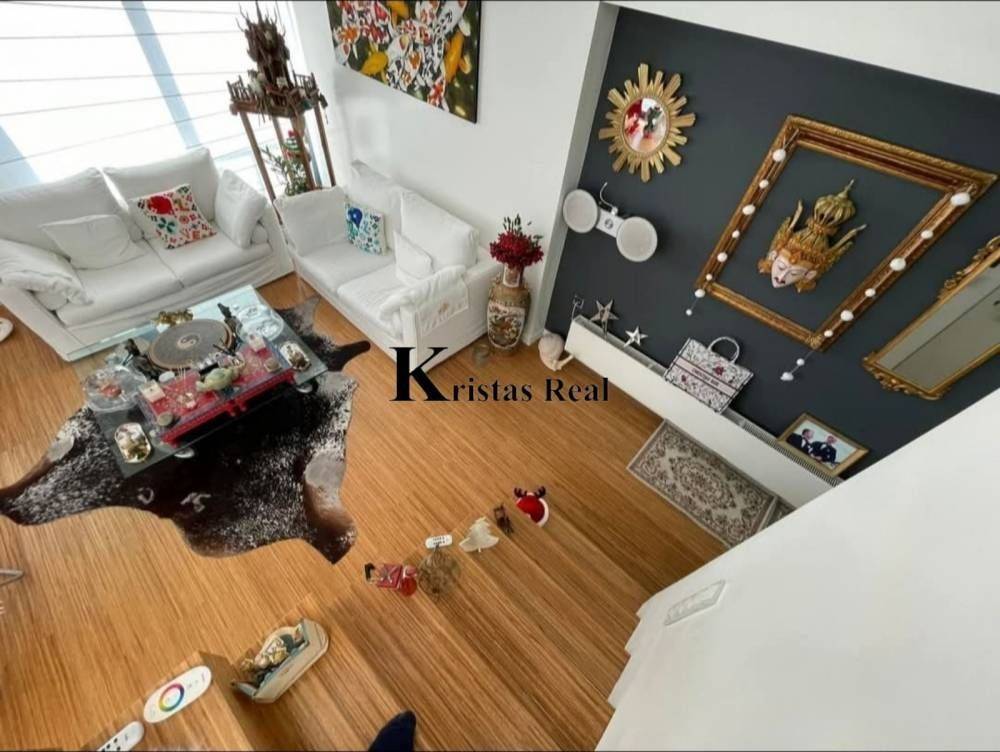 MAISONETTE 5th & 6th with 120 m2 a large guest bedroom with shower, toilet, fitted kitchen with MIELE appliances, living room and terrace. The sixth floor is the top floor of the 120 m2 maisonette of the 5th and 6th. It consists of an office space, a large master bedroom with a double sink, a double basin, a built-in bathtub - a 2x2 m swimming pool, a dressing room, a shower cabin and a terrace.