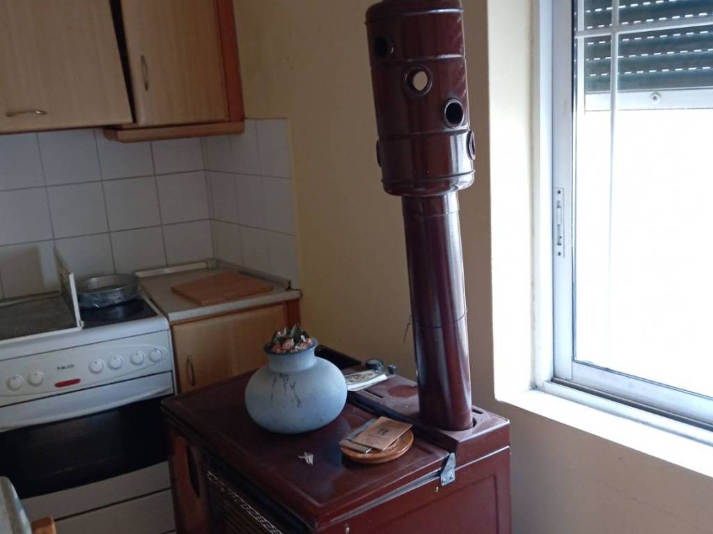 Ανακαίνιση του 2000, τριάρι με 2 κρεββατοκαμαρες, σαλόνι, ξεχωριστή κουζίνα , πατώματα laminate, σόμπα pellet και δυο ξύλου κ πετρελαίου, wc κ αποθήκη. Ηλιακός, μερικώς επιπλωμένο, κ ηλεκτρ.κουζινα- απορ/ρας