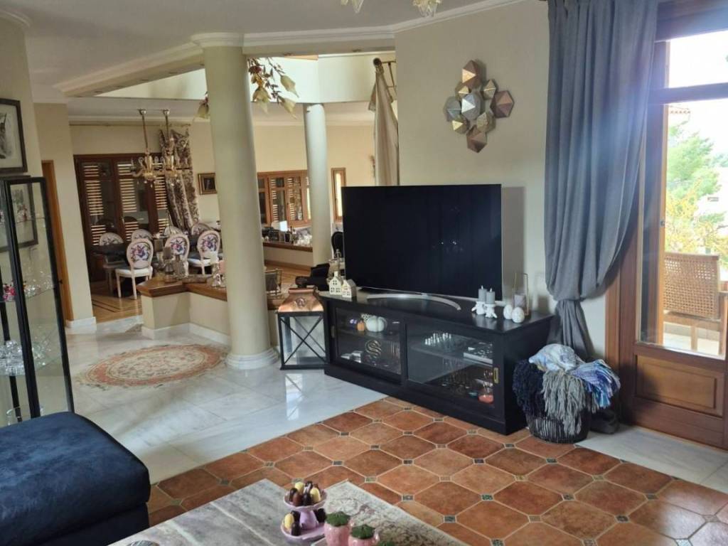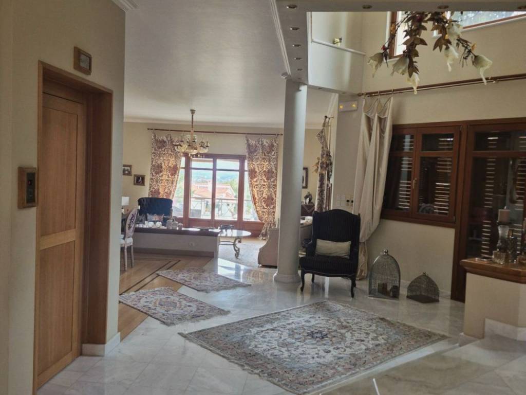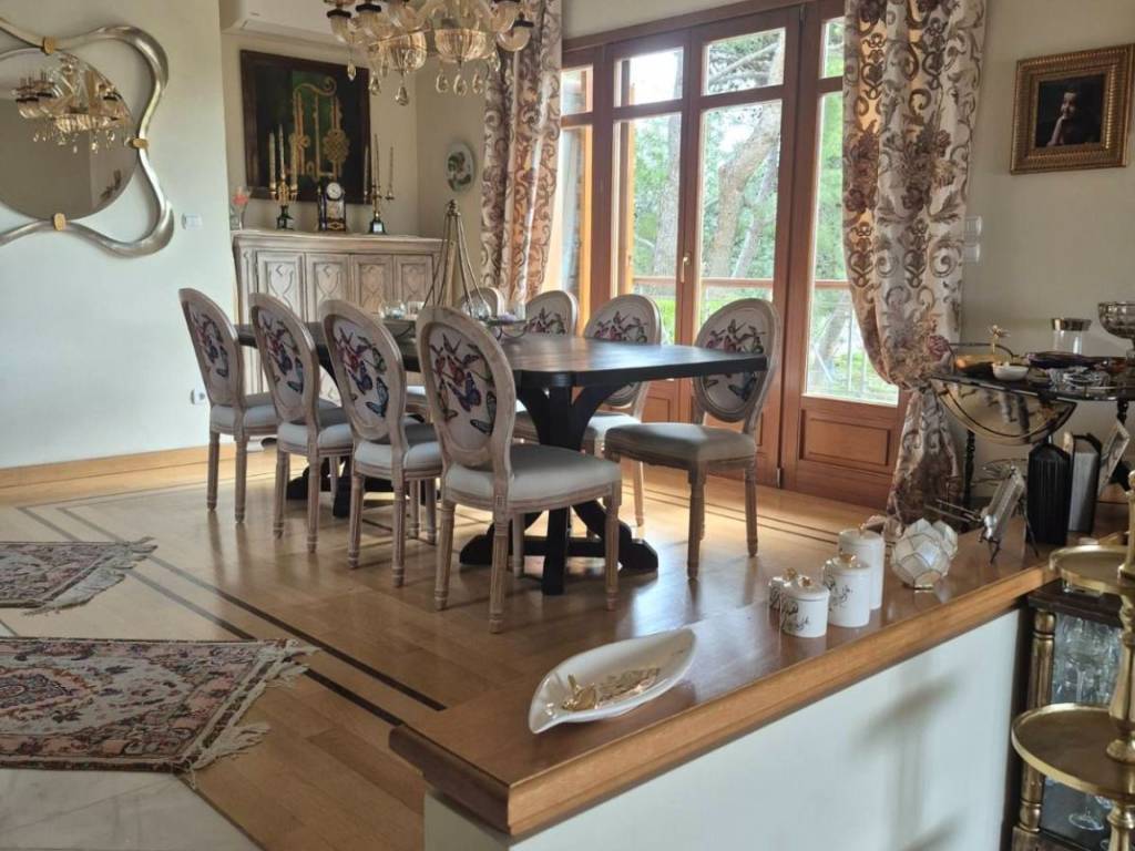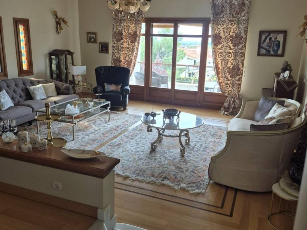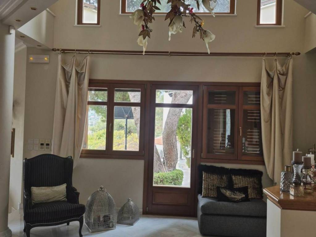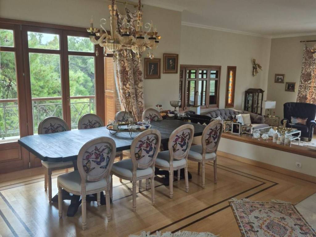 Luxury detached house of 500 sq.m., arranged over 3 levels, set on a 640 sq.m. amphitheatrical plot in the Diony–Pikermi area, built in 2011, consisting of: **GROUND FLOOR:** The main entrance welcomes us into an open and bright space consisting of two living rooms (one with a fireplace), a dining area for 12 people, a WC serving the ground-floor area, and a kitchen which also has a separate entrance. All areas benefit from abundant natural light, large windows, a spacious balcony, and a large veranda with access to a beautifully maintained garden and an unobstructed front view. **FIRST FLOOR:** A large and comfortable internal wooden staircase leads us to the upper floor, where, before reaching the bedrooms, we find a small sitting area. We then encounter the 4 bedrooms, including a master bedroom (one with a jacuzzi and shower). All bedrooms have their own balcony and are very bright, as well as a laundry room with access to a balcony. **BASEMENT:** The basement includes an independent apartment with one bedroom, kitchen, and living room with fireplace, featuring two separate entrances from the main house. It also includes two storage rooms of approximately 40 sq.m., parking space for 2 vehicles, a boiler room, and a boiler with 300-liter capacity. The residence offers the following features: an elevator connecting the basement to the upper floor, central underfloor heating, cooling–heating system (cooling on the ground floor and air-conditioning units in the bedrooms), with independent control per floor, as well as an alarm system with per-floor deactivation, satellite systems and Wi-Fi, wooden frames and doors with thermal-insulated glass windows, a reinforced security main entrance door, certified furniture from renowned brands whose authenticity can be verified, crystal lighting fixtures from a well-known designer house, and flooring combining parquet and marble. The entire layout has been designed with great care and study, ensuring that all elements are placed in their appropriate positions and harmoniously integrated, resulting in an excellent outcome that is immediately evident upon entering the residence. **PRICE with furniture: €1,350,000** **Without furniture: €1,250,000**