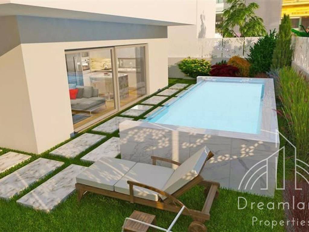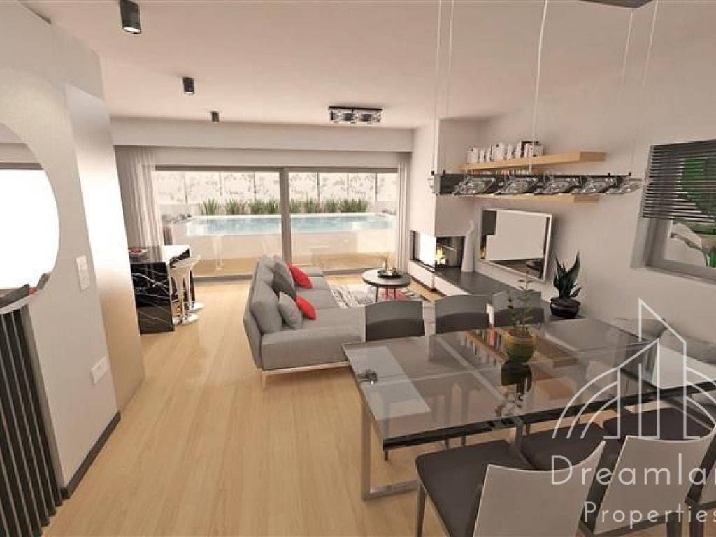 ALIMOS Kalamaki, Newly- Built Luxurious Maisonette 105 sq.m., Ground - 1st Floor, 3 Bedrooms (1 Master), Open Plan Large Living Room - Kitchen, 2 Bathrooms, W.C., Autonomous Underfloor Heating with Heating Pump, Air Conditioning, Private Garden and Swimming Pool, Security Door, 1 Parking Spot, Storage Unit, Luxurious Construction, Minimal Aesthetics, Under Construction, Price 600.000 Euros (Listing code: 3797).