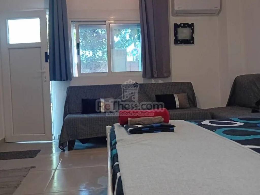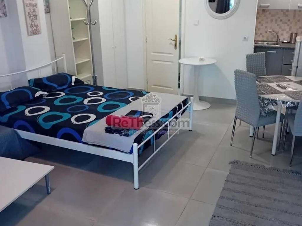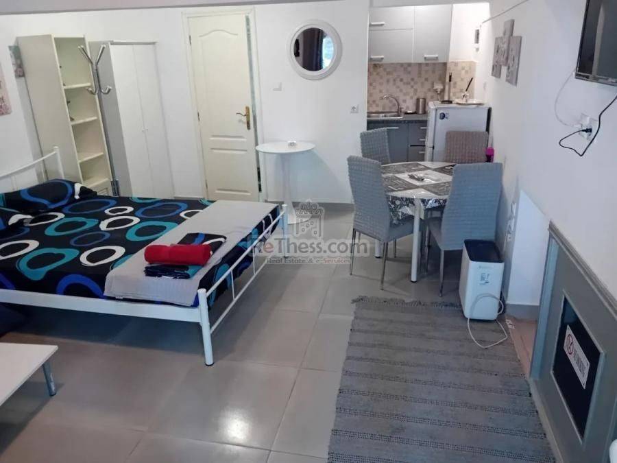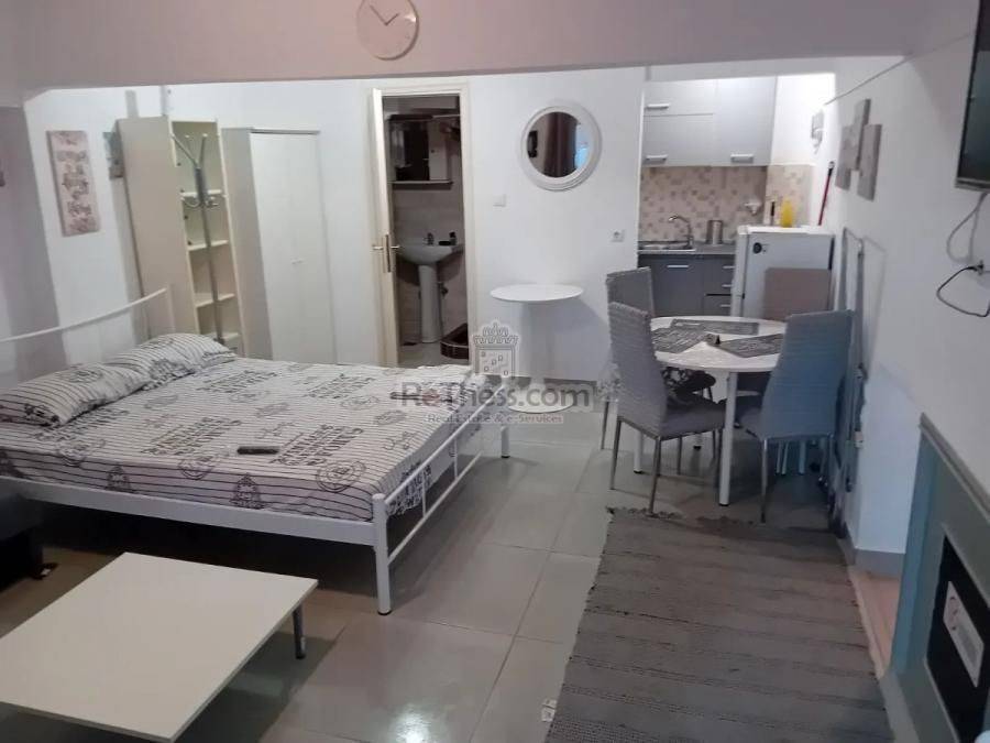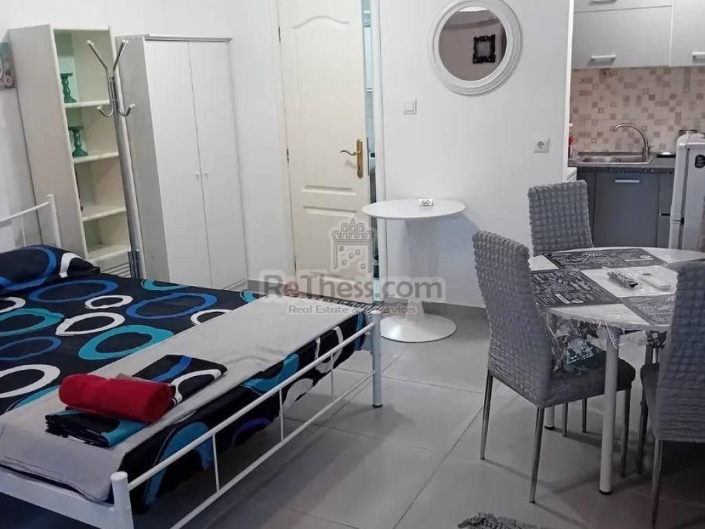 For rent in Thessaloniki studio 40 sq.m. fully renovated, (the renovation took place in May 2023) on Agioi Panton, behind the OSE very close to the OASTH terminals, all the buses for PA.MAK., Aristotle and Sindos universities stop there 100 meters from the metro stop. It is on the ground floor of the building, bright, fully furnished and equipped with electrical appliances, single space on two levels Bedroom, Living Room, Kitchen Bathroom, heating and cooling with air conditioner.
