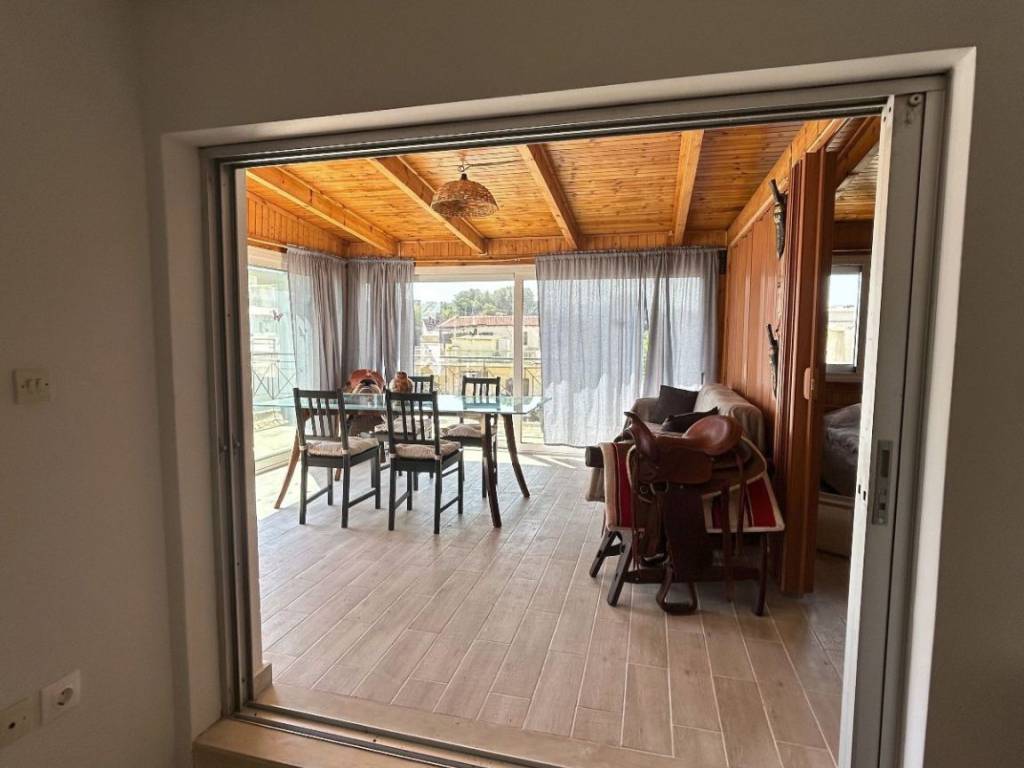 For Rent: The 3rd floor - penthouse in the center of Loutsa. It is 70 sq m and has solar water heater, night power, heat accumulators, air condition, parking, as well as electrical appliances (television, refrigerator, electric stove, washing machine), as well as Starlink internet.