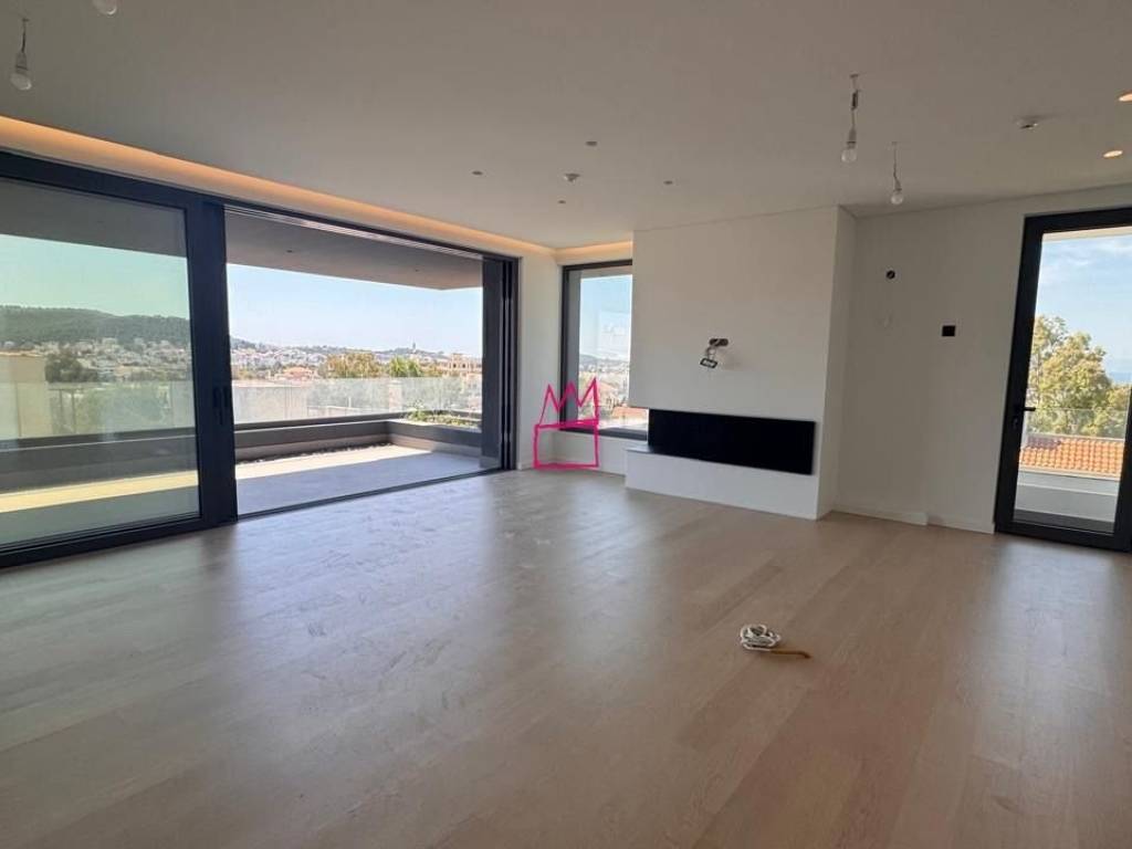 Luxury 174 sqm Penthouse Maisonette with Sea View An exceptional newly built 174 sqm penthouse maisonette, spread across two levels (3rd & 4th floor loft), located in a prime area close to the center of Voula. The property offers stunning sea views, a minimal modern design with high-end aesthetics, and abundant natural light thanks to its dual-aspect layout and east orientation. Key Features: 3 bedrooms (including master with en-suite bathroom) Spacious open-plan living & dining area with energy-efficient fireplace Modern kitchen (customizable to buyer’s preference) 3 bathrooms + 1 guest WC Large balconies with sea views High-quality wooden flooring Technology & Amenities: Smart home system Heat pump (underfloor heating & fan coil) Solar water heater & boiler Photovoltaic panels Air conditioning Elevator Video intercom, alarm & fire detection system High-spec energy-efficient aluminum frames Additional: Storage room (16 sqm) 2 parking spaces with EV charging provision Energy class A+ An ideal choice for luxury living or investment in one of the most sought-after areas of the Athenian Riviera.