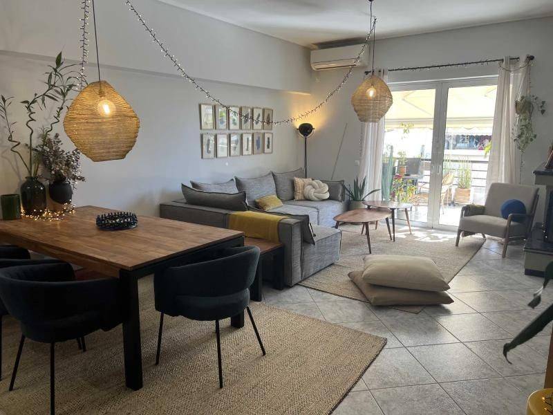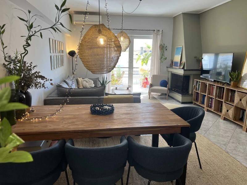 Οροφοδιαμέρισμα 2ου ορόφου 109τ.μ ανακαινισμένο, διαμπερές και ευήλιο, με δύο μεγάλες κρεβατοκάμαρες με μεγάλες εντοιχισμένες ντουλάπες, 1 μπάνιο, 1 wc, κουζίνα, μεγάλη σαλονοτραπεζαρία με τζάκι και πολύ μεγάλο πατάρι για εξτρα αποθηκευτικό χώρο. Αυτόνομη θέρμανση, ενδοδαπέδια με πετρέλαιο, διπλά αλουμινένια κουφώματα, σίτες, ηλιακό θερμοσίφωνα, πόρτα ασφαλείας, θυροτηλέφωνο με κάμερα, ηλεκτρικές τέντες και εγκατάσταση για οπτική ίνα. Το διαμέρισμα είναι εξοπλισμένο με 3 κλιματιστικά, ψυγείο BOSCH, πλυντήριο πιάτων BOSCH και πλυντήριο ρούχων Grundig, όλα σε άριστη κατάσταση.