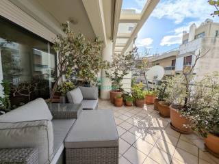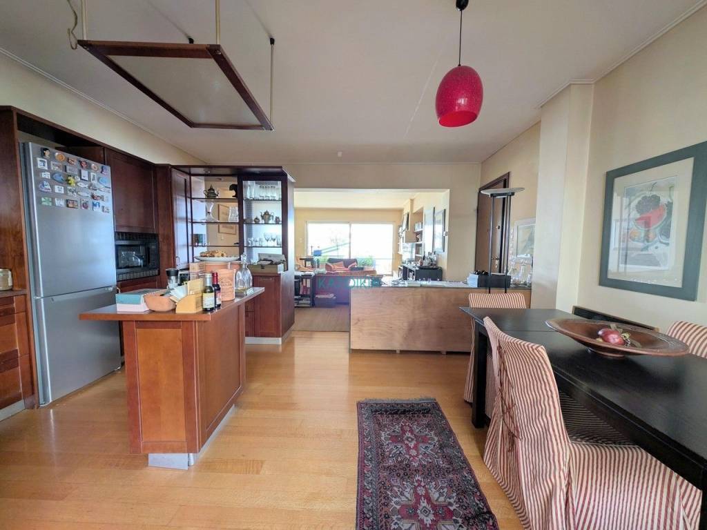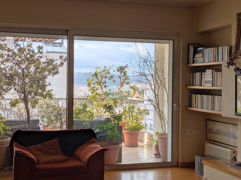 Located near the Lycabettus Hill perimeter, an exceptional 122sq.m. penthouse apartment is available for sale. A rare opportunity for those seeking a quality home in a prestigious location, right next to the lush greenery of LycaLycabettushigh-quality construction. This dual-aspect (airy) apartment is characterized by its excellent layout and abundance of natural light. The heart of the home features a striking, open-plan living area that includes a spacious lounge with a stylish fireplace, a dining area, and a modern kitchen-creating the perfect environment for both entertaining and relaxation. The residence offers two large bedrooms with ample storage space, a main bathroom, and an additional guest WC with a shower. The property’s standout feature is its expansive verandas, which offer breathtaking views and an unobstructed horizon. The apartment is equipped with autonomous oil heating, and there is also the possibility of acquiring a parking space. A rare opportunity for those seeking a quality home in a prestigious location, right next to the lush greenery of Lycabettus Hill, Price 620.000€, code 58363