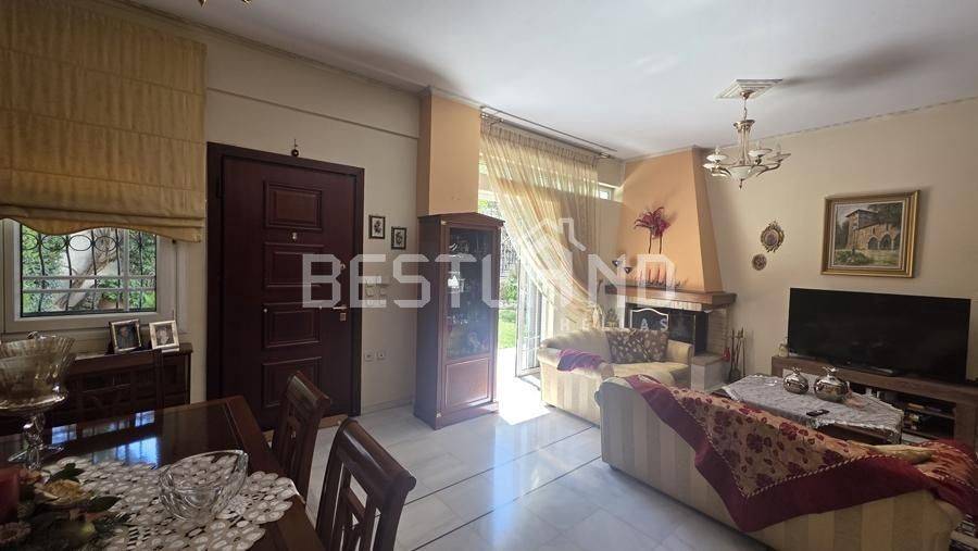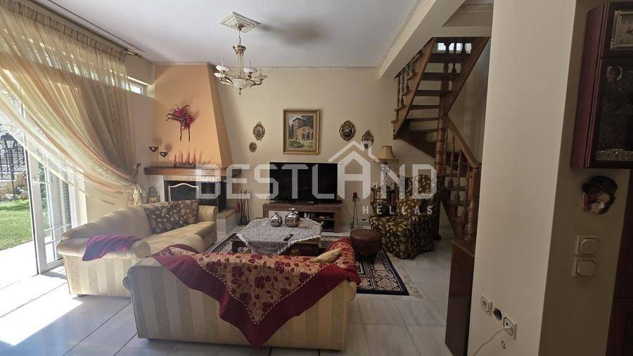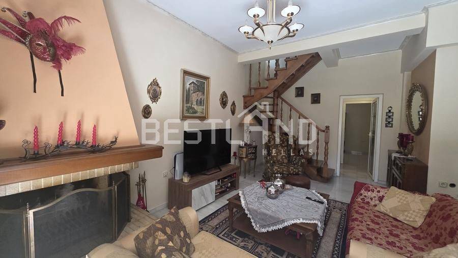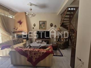 Nea Erythrea, Kastritsa - Tangent Maisonette 120sqm bedrooms 2, levels 2, ground floor - 1st, good condition, year built 1995, renovation year 2008, energy class C, living room, hall, kitchen, 2 bathrooms, heating type: autonomous (oil), quiet, dual aspect apartment, luminous, frontage, painted, solar heater, boiler, fireplace, garden, built in appliances, aluminum frames, double glazed windows, wood & marble floors, without common charges, secure door, alarm, video doorbell, internal staircase, pets allowed, residential zone, east-southern orientation, access from asphalt.