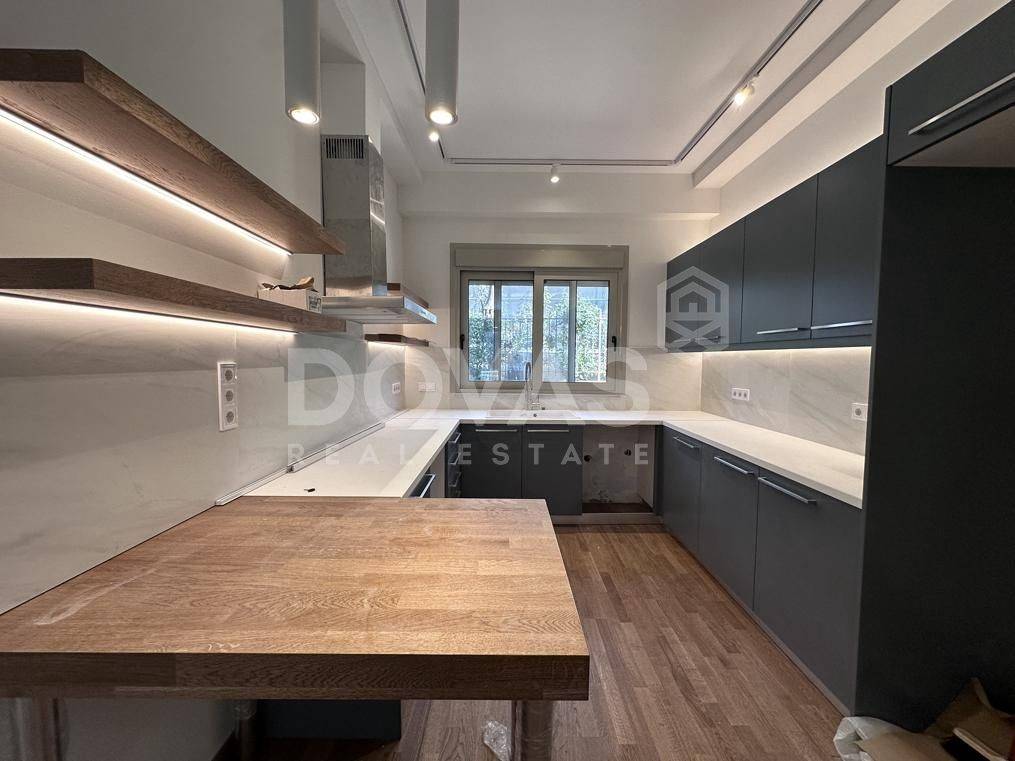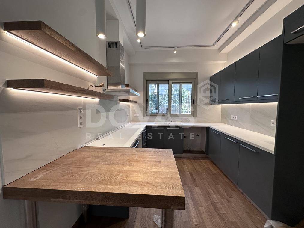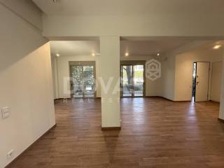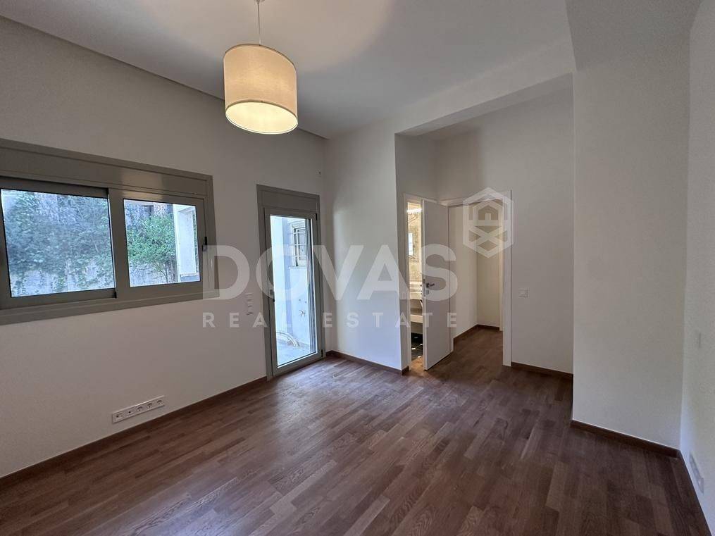 Nea Erythrea, Kastri - Apartment 130sqm unfurnished, bedrooms 2, master bedrooms 2, levels 1, ground floor, fully renovated, year built 1990, renovation year 2026, energy class A, living room, hall, kitchen, 2 bathrooms, wc, heating type: autonomous (heat pump), quiet, dual aspect apartment, luminous, square view, frontage, painted, electric roller shutters, storage space 3sqm, fireplace, balconies, large balconies, garden, built in appliances, aluminum frames, double glazed windows, door screen, wood floors, separate kitchen, without common charges, secure door, luxurious, under floor heating, within city plan, residential zone, access from asphalt.
