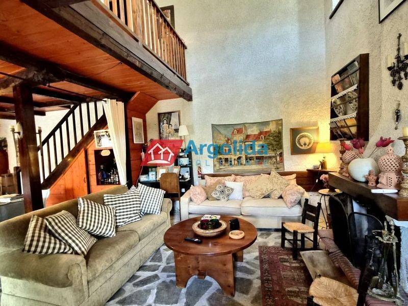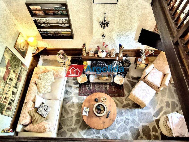 At an altitude of 600 meters, within an idyllic natural setting in Stylia, Xylokastro, a unique, fully renovated traditional mansion of the previous century is offered for sale, developed over two levels and combining authenticity, comfort, and absolute tranquility. Nestled literally in the embrace of the mountain, the property features large terraces with panoramic views of imposing mountains and lush green nature, creating an ideal environment for relaxation and privacy. The residence stands out for its traditional architecture with strong character elements, such as an impressive fireplace and distinctive wooden ceiling, while offering a spacious living and dining area, a functional kitchen, and a bathroom on the ground floor, as well as a charming loft with balcony access. On the upper floor, there are two comfortable bedrooms, with provision for the construction of an additional bathroom. The total living area is 177 sq.m., set on a 200 sq.m. plot, and the property is offered fully furnished, featuring air conditioning, large perimeter terraces, and a small storage room. Its excellent location makes it an ideal choice for a holiday home or tourism investment, as it is only 15–20 minutes from the beaches of Xylokastro, 20 minutes from Trikala and the Ziria Ski Center, and approximately 1 hour and 30 minutes from Athens. This is an outstanding opportunity to acquire a property with authentic character, in perfect harmony with nature.