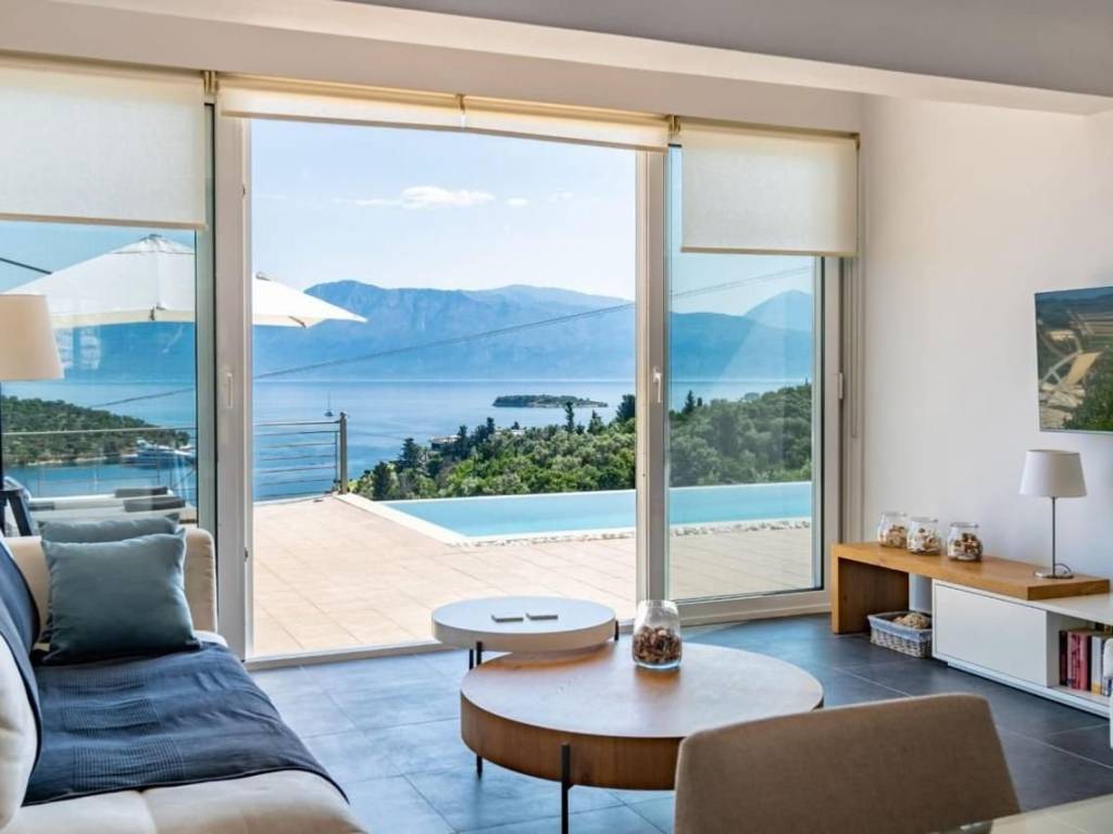 ΒΑΘΥ ΜΕΓΑΝΗΣΙ στην καρδιά του Ιονίου, στο αυθεντικό και διαρκώς ανερχόμενο Μεγανήσι και συγκεκριμένα στο Βαθύ Μεγανησίου πωλούνται 2 πολυτελείς ανεξάρτητες βίλες 270τ.μ. ( 135τ.μ. η καθεμία )με μοναδική πανοραμική θέα σε δύο κόλπους. Το ακίνητο εκτείνεται σε οικόπεδο 2.300 τ.μ. και προσφέρει απόλυτη ιδιωτικότητα, είναι κατασκευής το 2008, ενεργειακή κλάση Β+ και εξαιρετικά υλικά κατασκευής και υψηλής αισθητικής. Δύο ανεξάρτητες βίλες με ξεχωριστές εισόδους, έχουν ιδιωτικές πισίνες, πανοραμική θέα στους κόλπους του Ιονίου και προσφέρουν απόλυτη ησυχία και ιδιωτικότητα. Η καθεμία βίλα είναι 135τ.μ. και αποτελούνται από 3 υπνοδωμάτια, φωτεινό σαλόνι και πλήρως εξοπλισμένη κουζίνα, 3 πλήρη μπάνια, ένα wc, ιδιωτική πισίνα και μεγάλες βεράντες με ανεμπόδιστη θέα θάλασσα. Εξαιρετική τοποθεσία καθώς βρίσκονται πολύ κοντά στα cafe-εστιατόρια και τις παραλίες του Μεγανησίου. Προτείνονται ως εξοχικές μόνιμες κατοικίες, αλλά και ως επενδυτικά ακίνητα στο κοσμοπολίτικο νησί του Μεγανησίου. ΤΙΜΗ ΠΩΛΗΣΗΣ: 2.300.000 ΕΥΡΩ ΚΩΔΙΚΟΣ ΑΚΙΝΗΤΟΥ: ΣΠ-24 VATHY MEGANISI in the heart of the Ionian Sea, in the authentic and constantly rising Meganisi and specifically in Vathy Meganisi, 2 luxurious independent villas of 270 sq m (135 sq m each) are for sale with a unique panoramic view of two bays. The property extends over a plot of 2,300 sq m and offers absolute privacy, was built in 2008, has energy class B+ and uses excellent construction materials and high aesthetics. Two independent villas with separate entrances, have private swimming pools, panoramic views of the Ionian Sea and offer absolute peace and privacy. Each villa is 135 sq m and consists of 3 bedrooms, a bright living room and fully equipped kitchen, 3 full bathrooms, a wc, private pool and large verandas with unobstructed sea views. Excellent location as they are very close to the cafe-restaurants and beaches of Meganisi. They are proposed as permanent country residences, but also as investment properties on the cosmopolitan island of Meganisi. SALE PRICE: 2,300,000 EUROS PROPERTY CODE: SP-24
