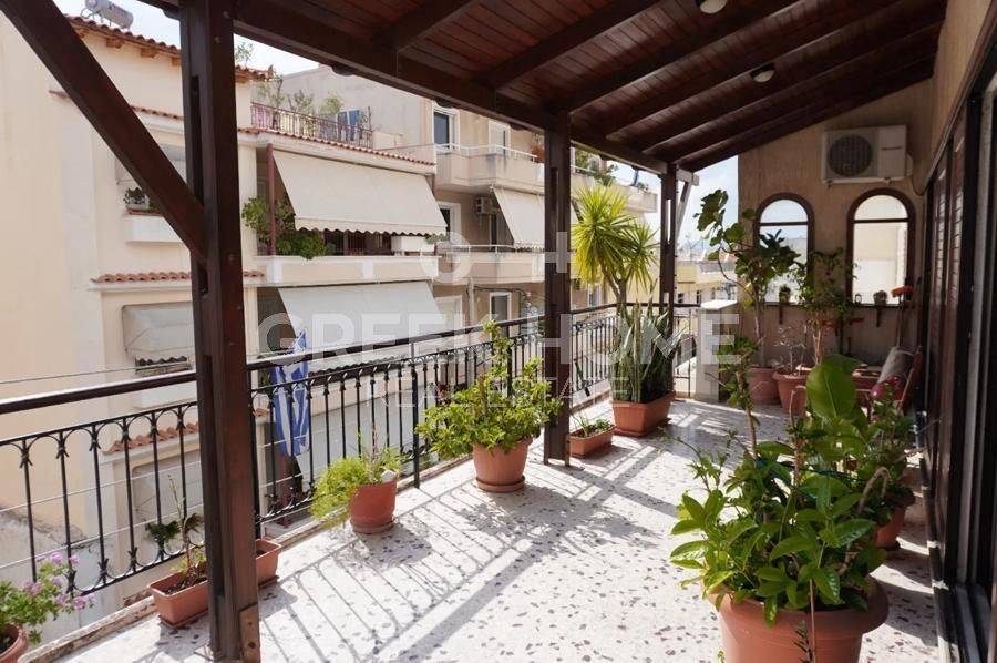 Agios Dimitrios (Attica - Southern Suburbs) - Apartment 53sqm electrical appliances furnished, bedroom, 2nd, penthouse, renovated, year built 1988, renovation year 2021, energy class D, living room, hall, kitchen, bathroom, heating type: autonomous, air condition, quiet, dual aspect apartment, luminous, mountain view, frontage, storage space 1sqm, fireplace, balconies, large balconies, balcony 42sqm, loft storage, aluminum frames, double glazed windows, door screen, wood & marble floors, without common charges, video doorbell, pets allowed, short term lease, close to μετρό/ηλεκτρικός (up to 0), close to σχολείο (up to 0), close to πλατεία (up to 0), close to αγορά (up to 0).