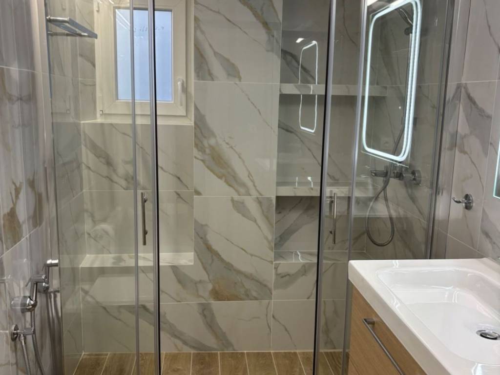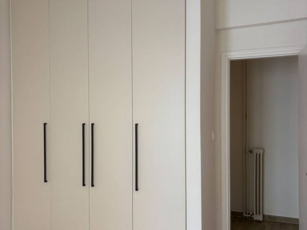 Apartment on a quiet street in a central location of Nea Smyrni ( near tram/bus stop) Just completed a full renovation (new electrical and plumbing installation) with expensive materials. The apartment has sliding aluminum frames , with screens in all rooms. Individual natural gas heating. 3 large rooms and a smaller one that can be used as a guest room or for additional storage space (laundry room) as it has a washer / dryer installation. Quiet apartment building (consists of a ground floor and 3 apartments on the upper floor). The living room has marble flooring, the bedrooms have parquet flooring and the other areas have wood-like tiles. A large veranda on the facade and a smaller one on the back. A fully renovated bathroom and a wc with shower and heated towel rail. 2 large storage spaces above the bathroom and wc . New wardrobes in the bedrooms. Kitchen fully renovated with new cabinets. Pre-installation of alarm system and air conditioning units. In the living room plasterboard with spotlights. Security door.