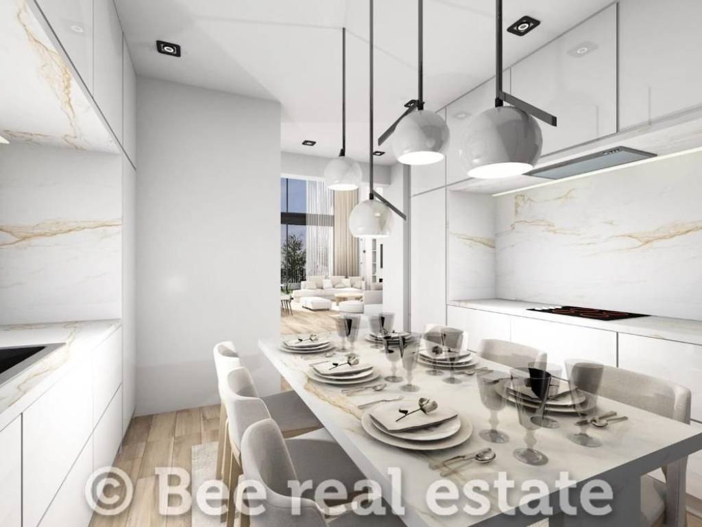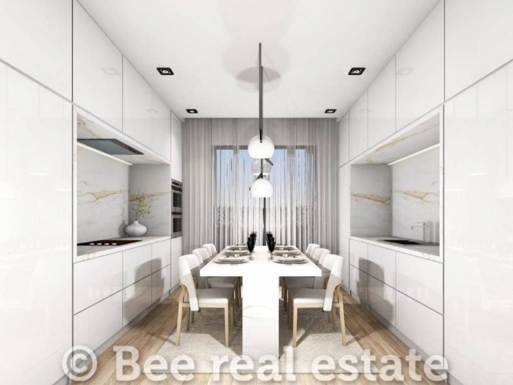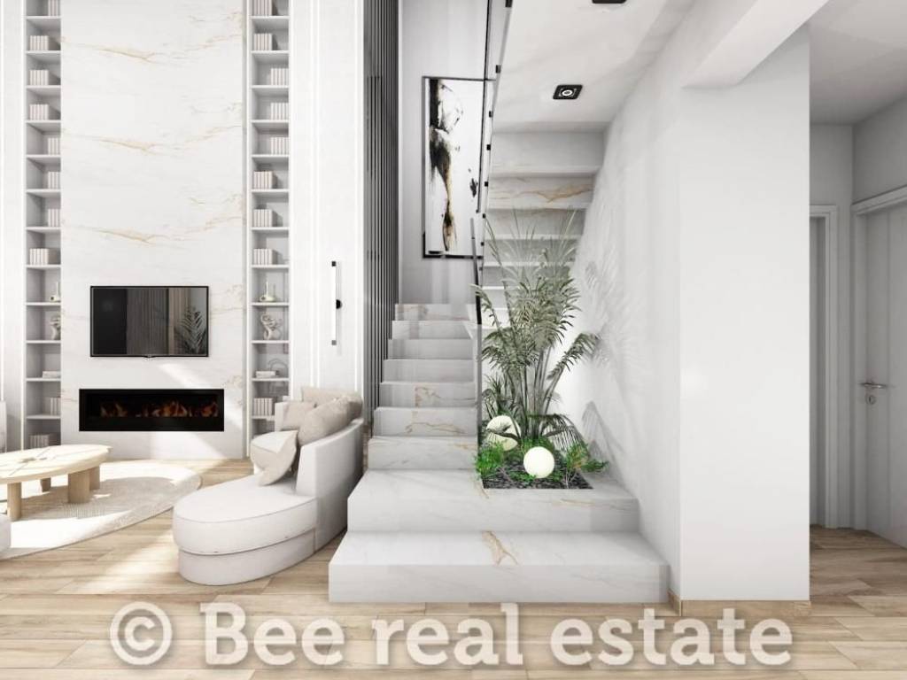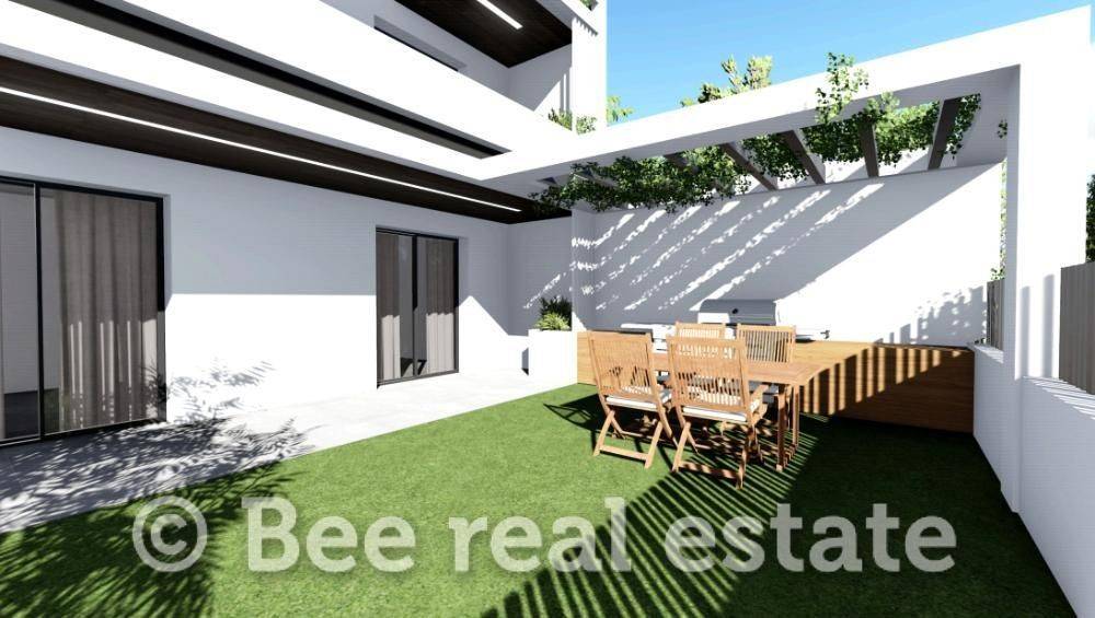 THERMI – FOR SALE by Bee One Real Estate A unique, under-construction maisonette (D2) of exceptional aesthetics, located on a corner plot, featuring a private garden, high construction standards and unobstructed views over a green parkland setting. The property is corner-positioned, sunny and airy, with a total surface of 150 sq.m., developed over two levels (ground floor and first floor) and benefits from its own exclusive-use private garden. The ground floor comprises an open-plan living room, lounge, dining area and kitchen, one bedroom, a spacious bathroom, as well as front and rear private gardens with landscaped planting, pergola and BBQ area. On the first floor, there are two large bedrooms sharing a generous bathroom. All rooms open onto large terraces, offering beautiful views of the surrounding green environment. The residence includes a large storage room in the basement, accessible by elevator, and one parking space at ground level within the complex. The property is a 2025 construction and belongs to Energy Class A+, offering maximum levels of thermal and acoustic insulation and excellent energy efficiency. It features a private front and rear garden, independent entrance, private parking with pre-installation for an individual power supply for electric vehicle charging, underground storage, individual heating via heat pump, underfloor heating, thermally broken aluminum frames with energy-efficient double glazing, security entrance door, advanced thermal façade insulation, sound and thermal insulation, very large openings ensuring abundant natural light, insect screens, installed air conditioning, alarm system, solar water heater, energy-efficient fireplace, FTTH fiber optics, structured CAT6 Ethernet cabling, electric shutters on large openings, fitted wardrobes, spacious terraces, a generous living area, premium-quality wood or tile flooring, LED lighting, controlled access, video intercom and CCTV surveillance system, and accessibility for persons with disabilities. Additionally, underfloor heating with an individual natural gas boiler and solar collector will be installed. This is a truly distinctive property, set in a quiet green environment and constructed according to all modern standards of safety, insulation, energy efficiency and sustainable design. Delivery is scheduled for the end of 2025.