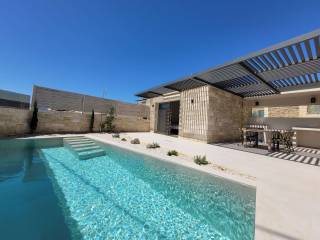 Set on a 202 sqm plot, the villa is thoughtfully arranged on a single level, comprising two distinct volumes connected by a covered terrace, creating a seamless blend of privacy and shared living spaces.