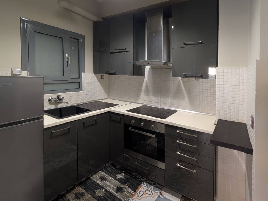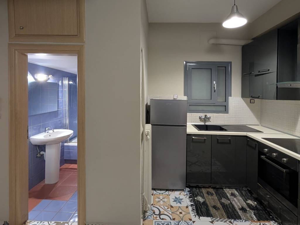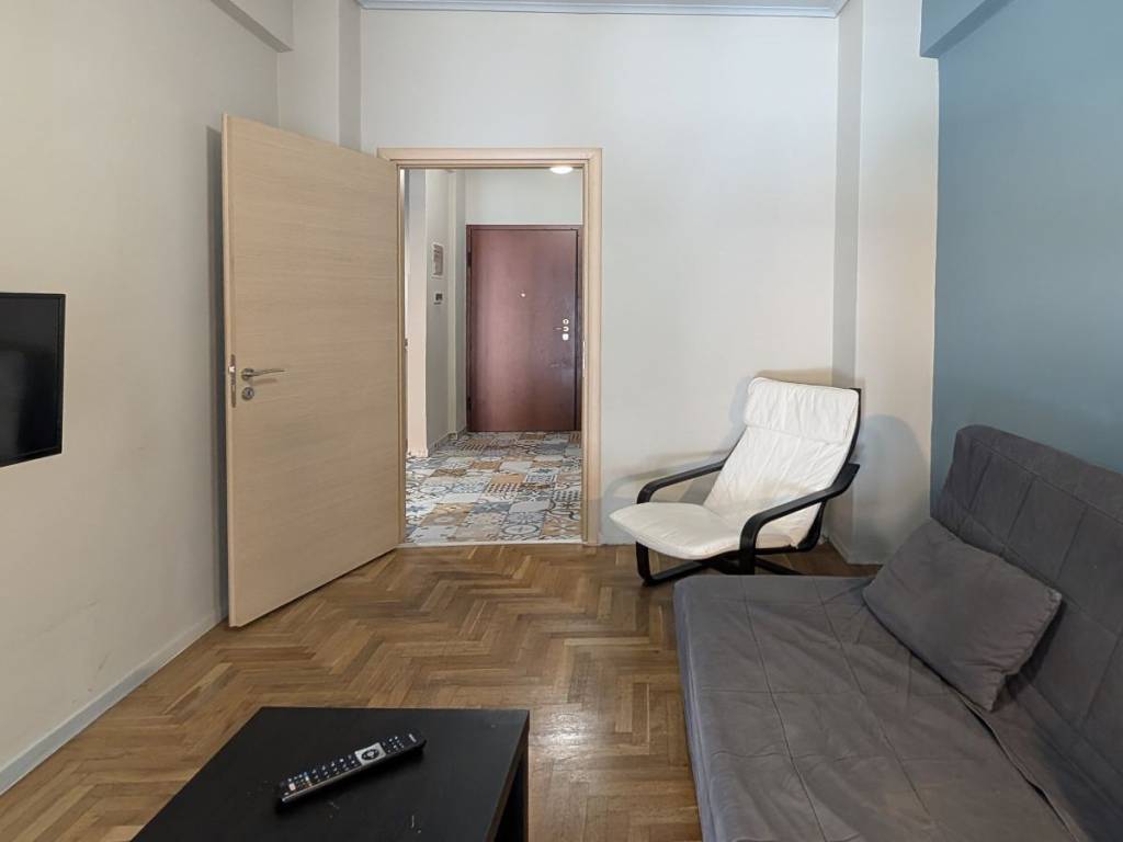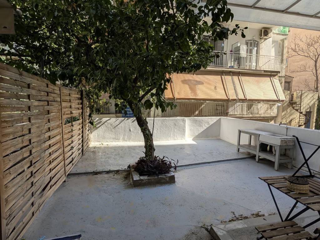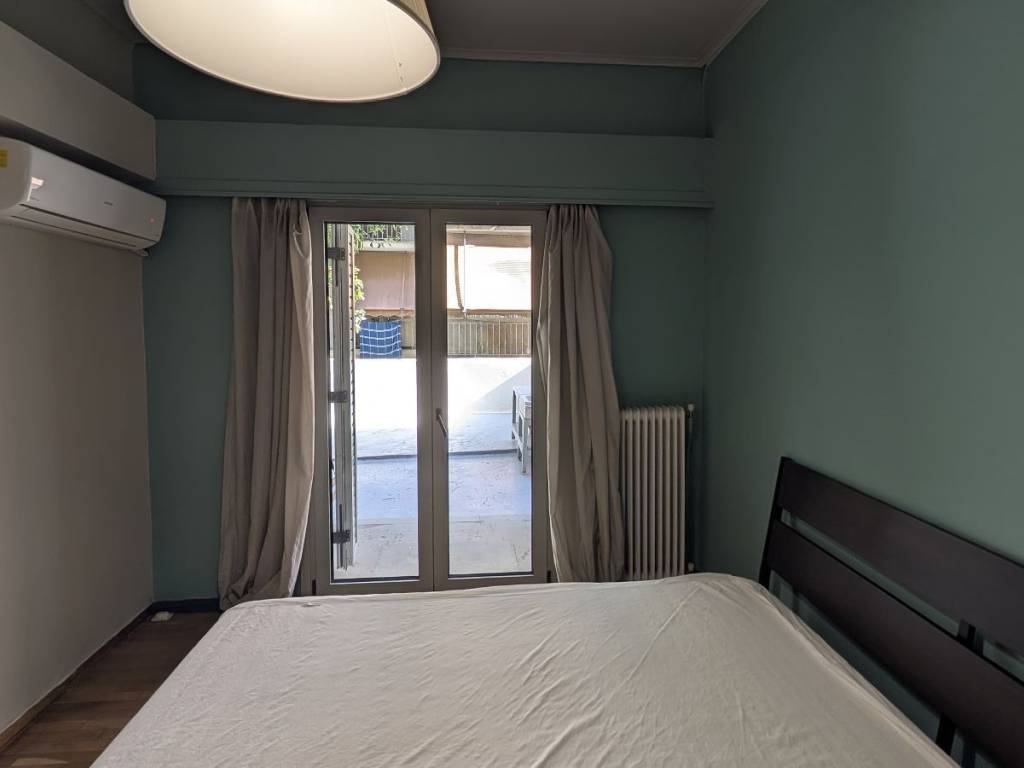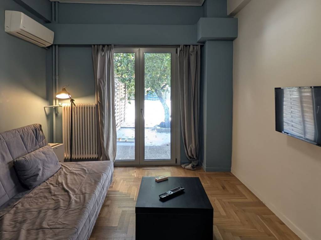 Ground floor apartment of 48 sq. m. on a very quiet street in Strefi Hill, furnished and fully equipped with electrical supplies, fully renovated in 2016 , with double glazed aluminium frames, new fitted kitchen, security door, air condition. 1 entrance hall with open plan kitchen, 1 living room with the possibility to be used as a second bedroom, 1 bedroom, 1 bathroom, and an outdoor patio that can be transformed into a beautiful garden. Price: 580 € pcm