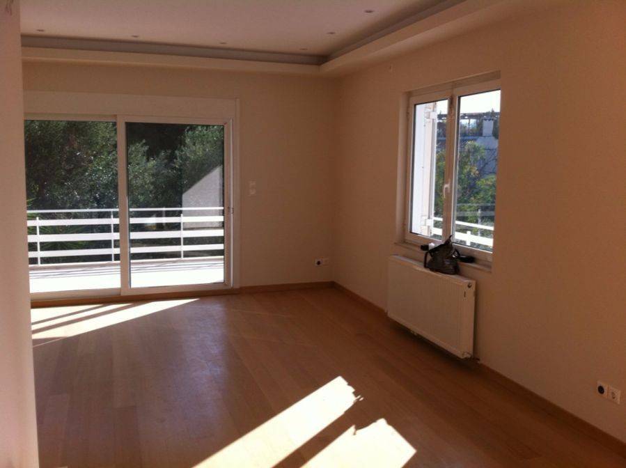Fully renovated 1st floor apartment, 100 sqm, living room with fireplace, separate large kitchen, 2 bedrooms with large closets, desk, 1 bathroom, 1 WC, large balcony, central heating, solar water heating, electrical appliances (stove, refrigerator, dishwasher), offered exclusive use of the terrace, which has a loft with bathroom and washing machine.