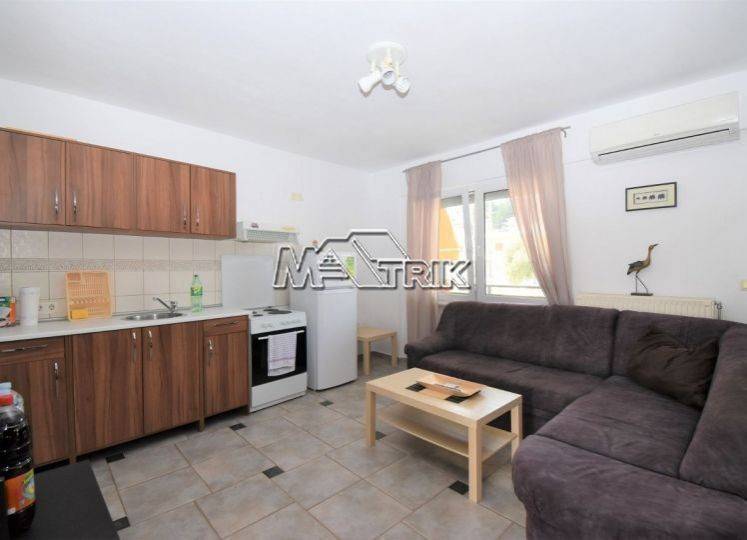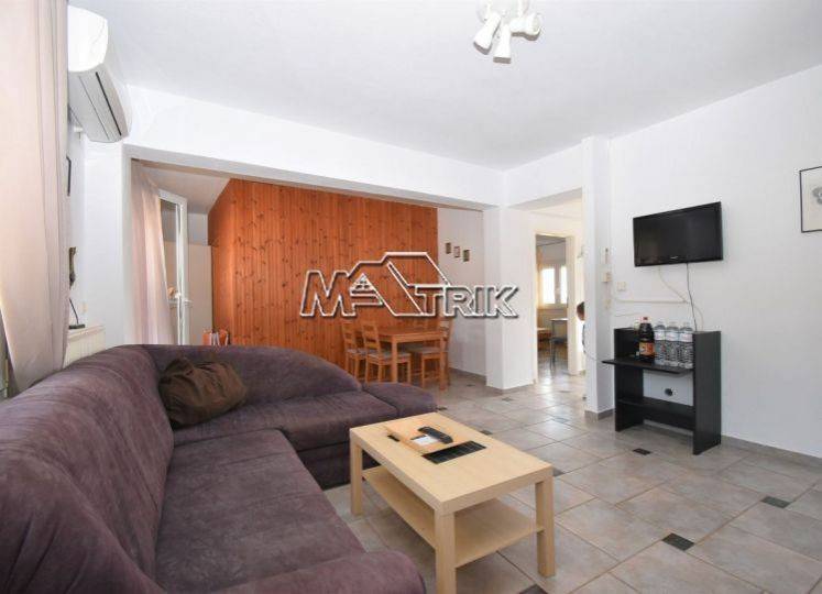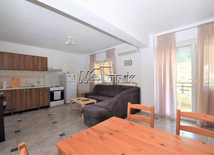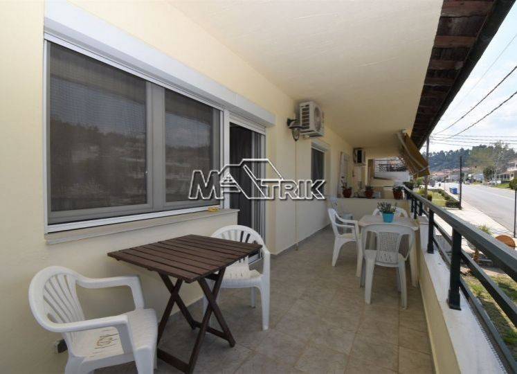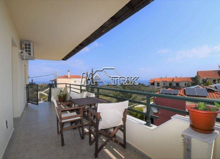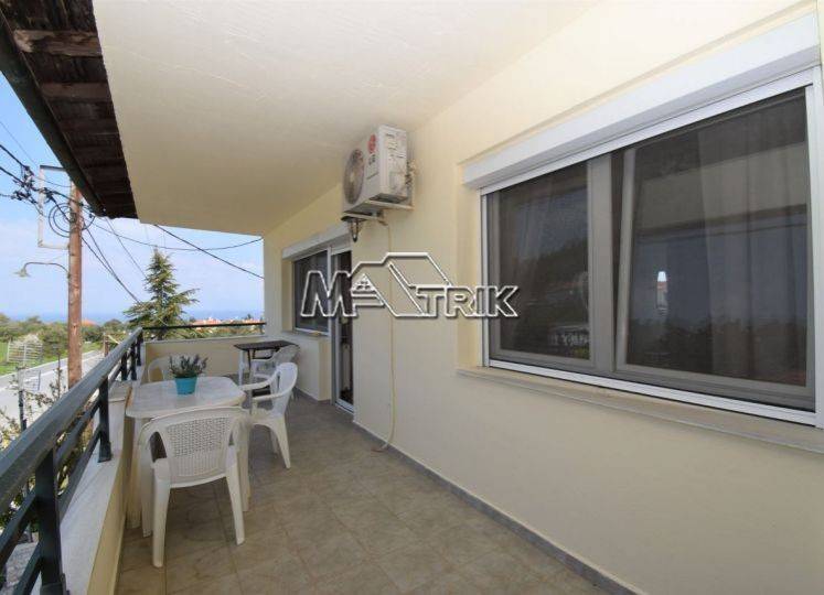 chalkidiki , kriopigi . cornered apartment of 60 sqm, 1st floor, airy, with panoramic sea view, 800 meters from the beach with easy parking. the apartment consists of a spacious kitchen- livingroom , 2 bedrooms, 1 big bathroom, comfortable balconies frond and back , as well as a storage room. it has individual heating , with mounted heating bodies, tiled floor, aluminium window frames, 2 air conditioners, electric water heater. it is available for rent only for long term or for a full year. the electricity and water expenses are not included in the prices. available from 01.03.2026.