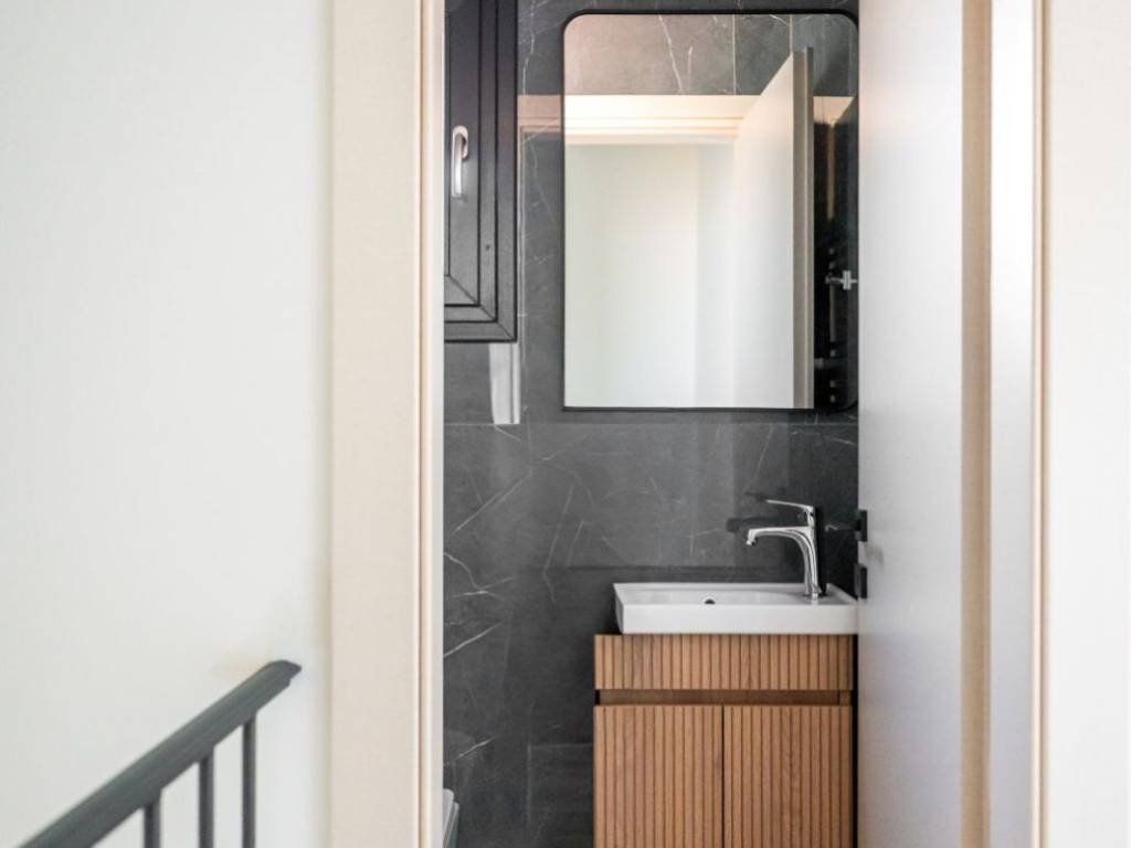 In the area of Nea Politias in Larissa for sale in a 6-storey building, a maisonette of 130 net sq.m. The maisonette consists of 3 bedrooms, living room, kitchen, dining room, 3 bathrooms and a separate storage room and parking space. The construction is super luxurious, has an excellent view and the energy class of the building is A+.