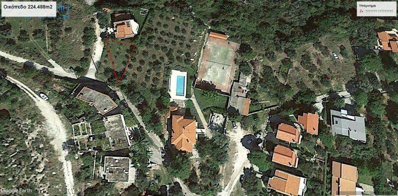 Plot in Palio 224.48m2 with Building Factor 0.3 and coverage factor of 30%. The plot has a triangular shape and is located in a quiet area overlooking the sea.