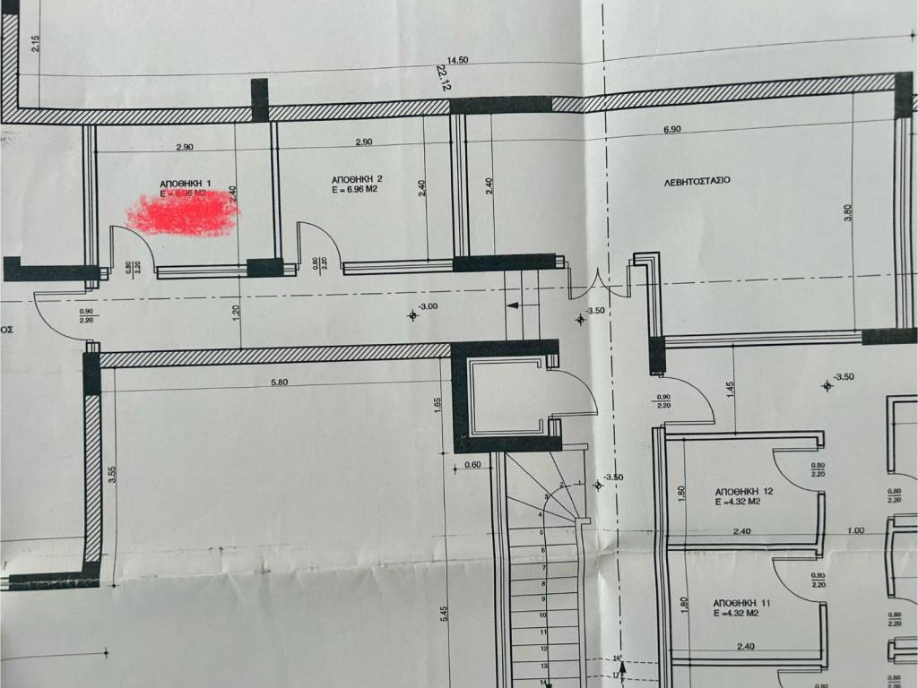 Υπόγεια αποθήκη 7 τμ σε πολυκατοικία διαμερισμάτων με πρόσβαση από ασανσέρ και με σκάλες.