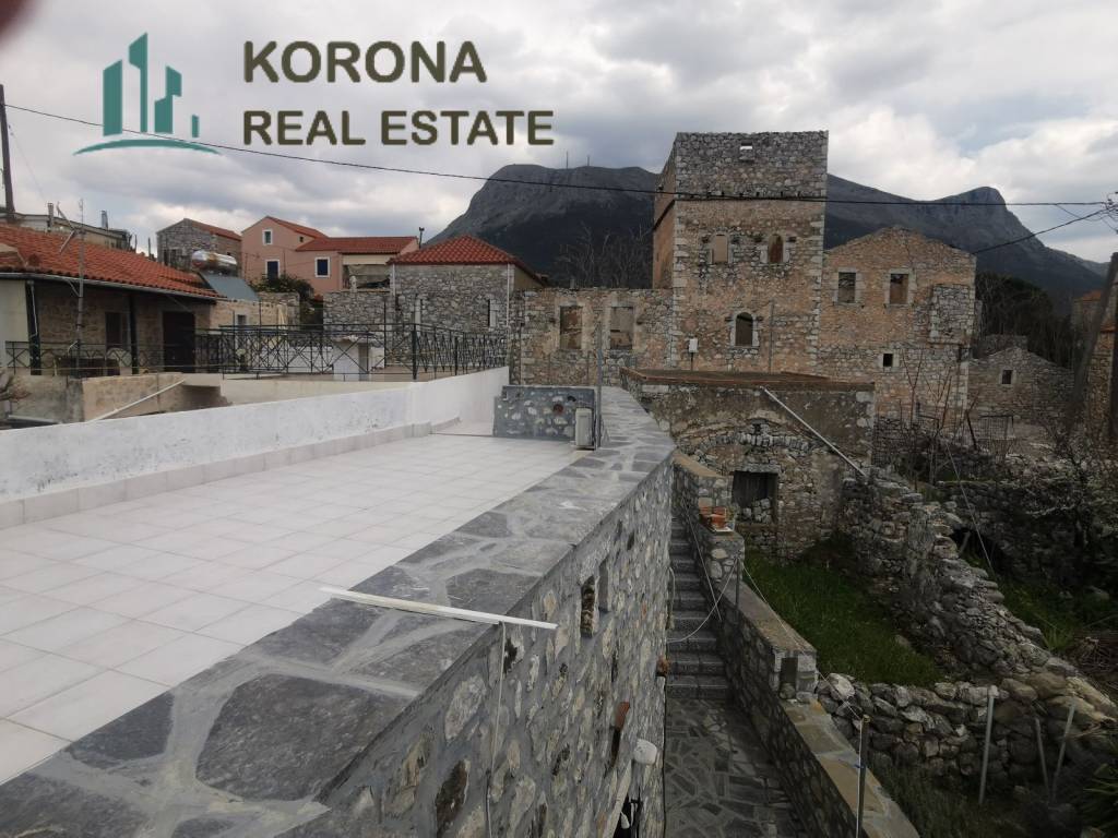 MANI- AREOPOLI. Our architectural office has a property of 160 m2 on a plot of 250 m2 in a green environment with one parking space. The appearance of the residence has been restored according to Maniac standards. The view from the front has a view of the sea and to the right the traditional settlement.