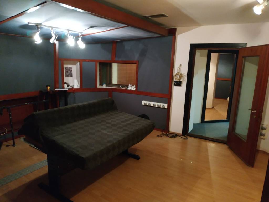 Recording Studio with control room,recording room with drum booth and 2 rehearsal spaces. 2wc,lounge,small ofice and storage space.Located near the center of the city in front of a metro station.Professional acoustic design and sound insulation.