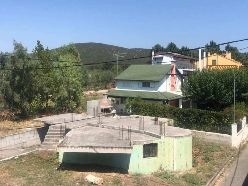 Οικόπεδο 250, υπο κατασκευή κτίσμα 100 ισόγειο + όροφος + 80 υπόγειο., με αποχέτευση. Πωλείται ημιτελές. Βρίσκεται στον παραθαλάσσιο οικισμό "Αχλάδι", και εντός των ορίων του οικισμού.