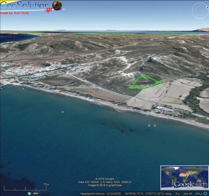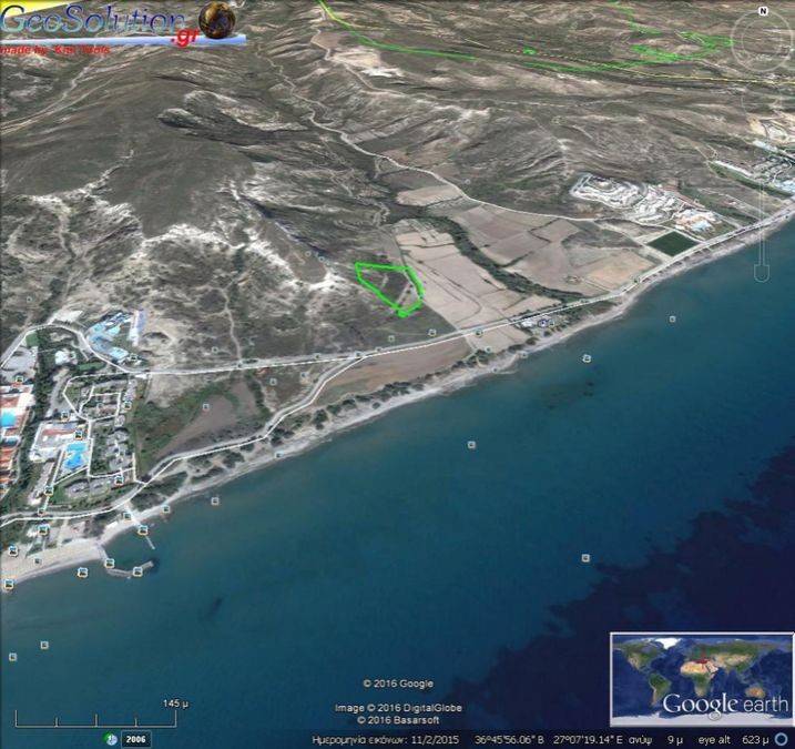 Kardamena - 9260m2 plot for sale located near many hotel establishments. 230m distance from sea, sea view. Plot approved by National Tourist Agency in 1980.