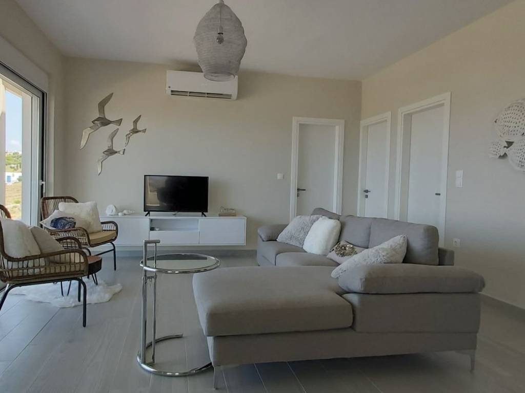 Ισόγεια, νεόδμητη και σύγχρονη εξοχική μονοκατοικία, 118 τ.μ, μεγάλος ενιαίος χώρος τραπεζαρίας - κουζίνας - καθιστικού με μεγάλες μπαλκονόπορτες για φως και θέα, 3 υ/δ - το 1 με δικό του μπάνιο και γκαρνταρόμπα, master μπάνιο, επιπλωμένο, εξοπλισμένο, a/c, wifi, βεράντα με θέα θάλασσα.