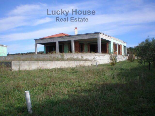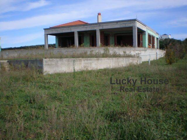 Στα 4000τμ εξαδιαιρέτου είναι χτισμένες 2 μονοκατοικίες των 185τμ ανεξάρτητες και σε απόσταση μεταξύ τους, ο χώρος έχει 2 εισόδους . Οι 2 μονοκατοικίες είναι ημιτελείς 185τμ η κάθε μία σε 3επίπεδα ιδιαίτερης αρχιτεκτονικής και χωροταξίας κεραμοσκεπή πρόβλεψη για ασανσέρ ωραίος περιβάλλων χώρος με δένδρα περιφραγμένος μεγάλη ανοιχτωσια θέα, διαθέτει δεξαμενή βρόχινου νερού για πότισμα και αυτόματο πότισμα . Υπόγειο : αποθηκευτικός χώρος 1ο επίπεδο : Σαλοκουζίνα με τζάκι -wc 2ο επίπεδο : 3δωμάτια -2 λουτρά Εξ όλοκληρου τα 9500τμ αγροτεμαχίου με τις 3 μονοκατοικίες πωλούνται στην τιμή των 400000ευρώ .