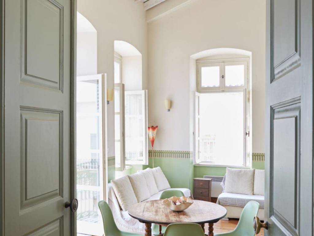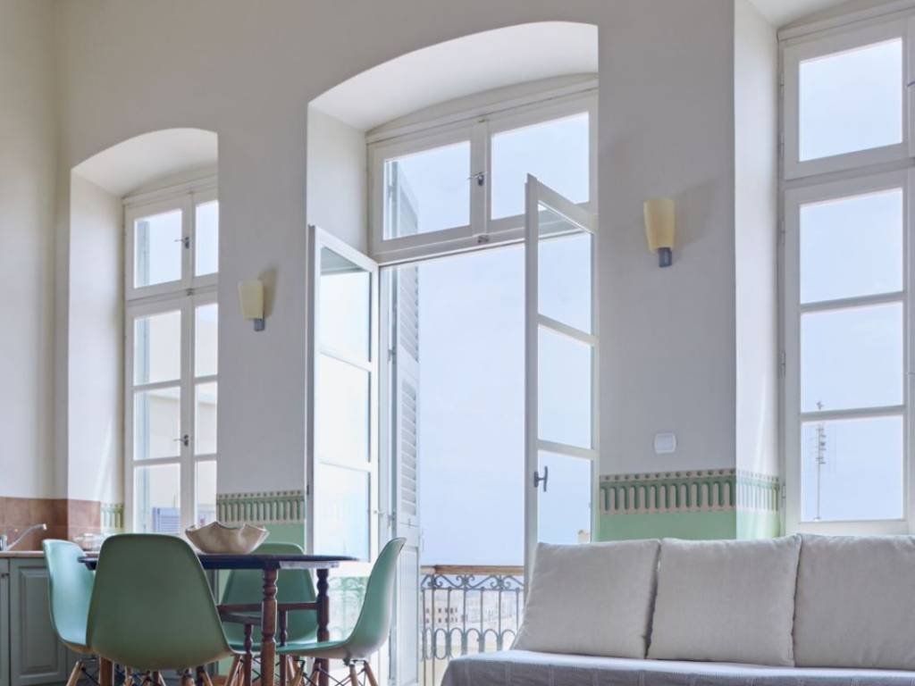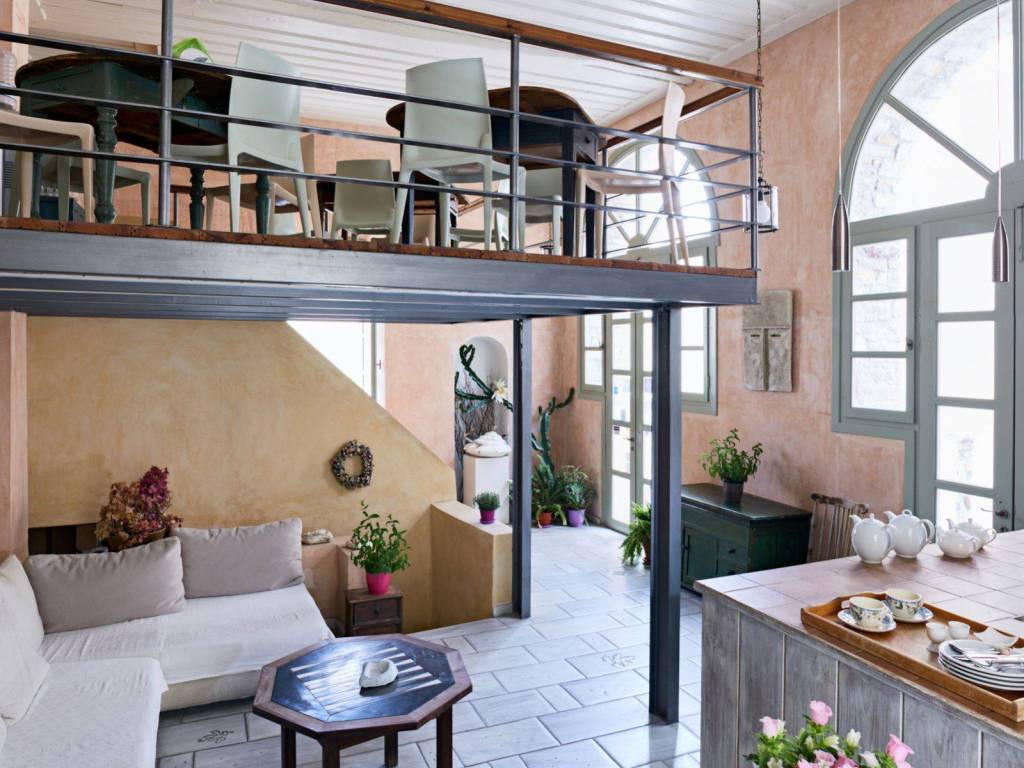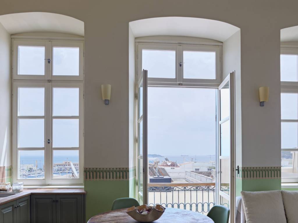 This unique sea view maisonette situated on the first floor of a mid-19th century building in a quiet part of Ermoupolis a few blocks from the seafront. Features a split level arrangement with a cozy twin bedroom on the mezzanine and the master bedroom with a double bed and an ample living area with two sofa beds, and a dining table on the main floor. Within the separate living area of the maisonette, there is a kitchenette with a sink, cupboards, small fridge, coffee machine, toaster, microwave, kettle, plates, pots, cutlery. IT OFFERS FREE WIFI. The building also offers a big organized kitchen an ample living room, a washing and dry machine as well. BILL ARE INCLUDED AVAILABILITY FROM ***/******* TO ***/*******