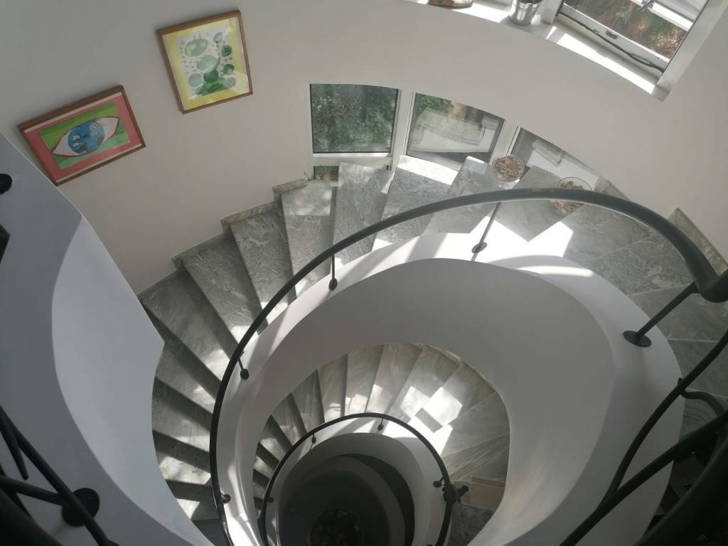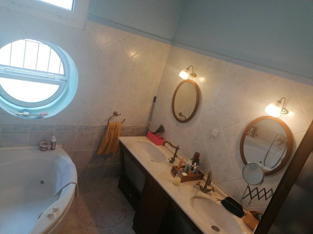 The house is located on a plot of 420m2, is on three levels and the main square meters are 222, while the auxiliary and storage spaces are 136m2. In the semi-basement there is a closed parking lot (with electric door), the boiler room with a natural gas boiler and a second backup oil boiler. There are also two separate storage rooms, one of which has a wc. On the ground floor there are 4 rooms with built-in wardrobes, and two bathrooms. And on the first floor we found the living room with fireplace, dining area, separate very bright kitchen and a guest wc.