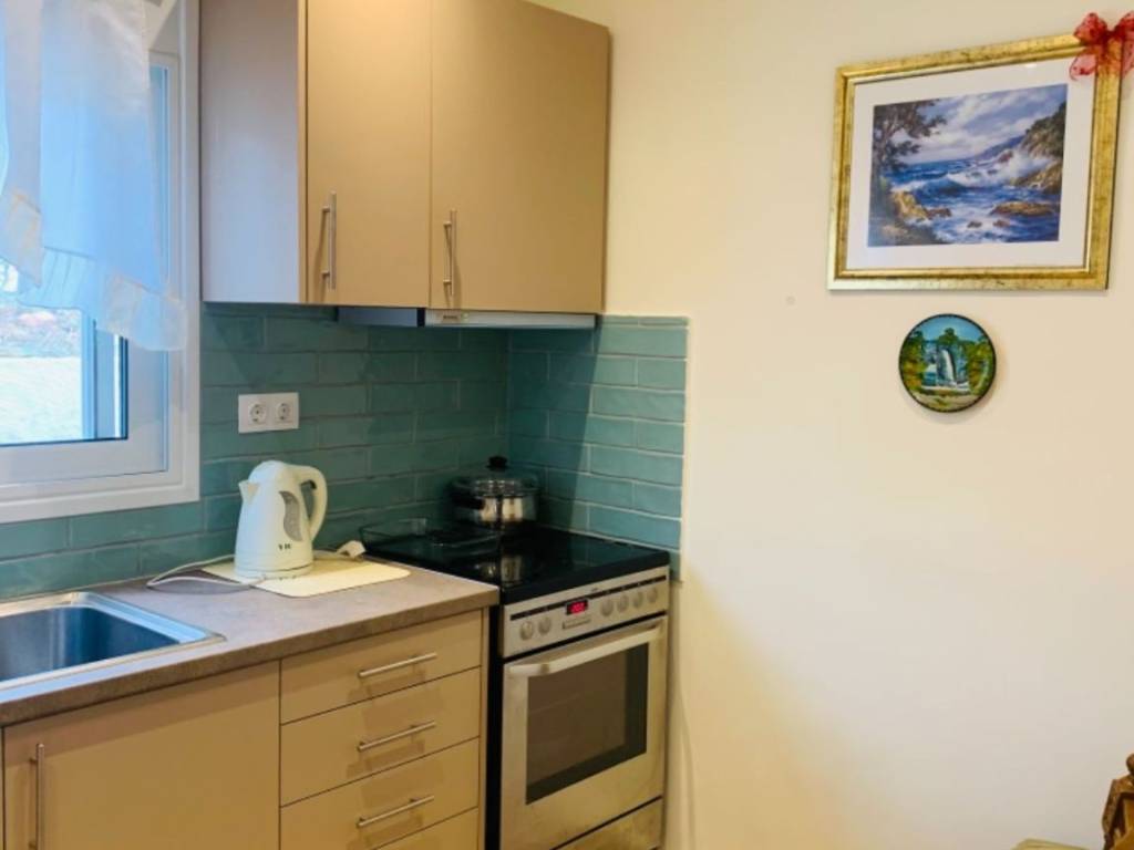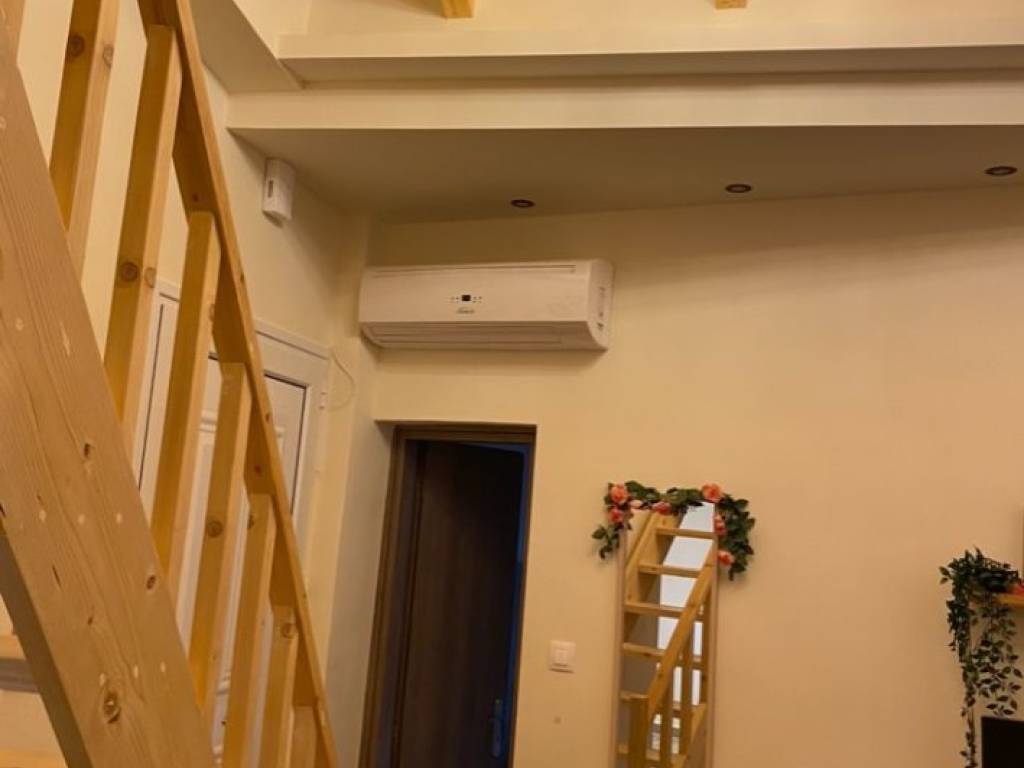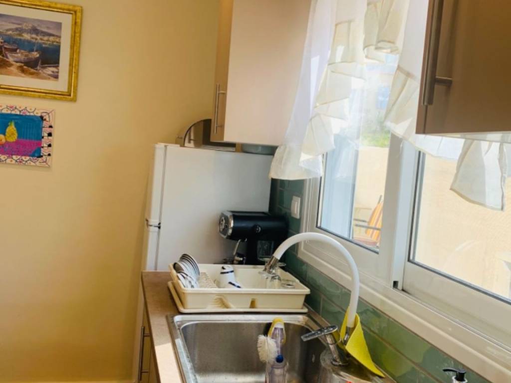 The studio is located in Agios Dimitrios in Lagonisi. It is 47 sq m. It has a room with a bathroom and a kitchen. It is furnished (kitchen, kitchen utensils, fridge, TV, laundry, 1 bed, 1 sofa bed, 1 cupboard with mirror, table with 4 chairs inside, 4 outdoor chairs and 1 table, with awnings and umbrella. It has a fan coil for heating and cooling, solar water heater, barbecue sink, a parking space inside the complex, a large garden with trees and flowers. Also night electricity. It is 19 minutes away from the airport. There are nearby super markets, cafes, taverns and organized and unorganized beaches. It is 2 minutes by car from the organized beach and one minute from the church of Agios Dimitrios.It is located in a complex of 2 other houses.