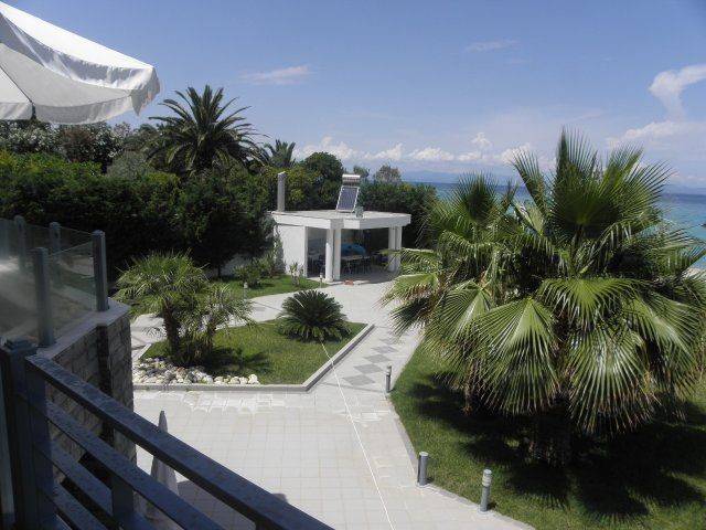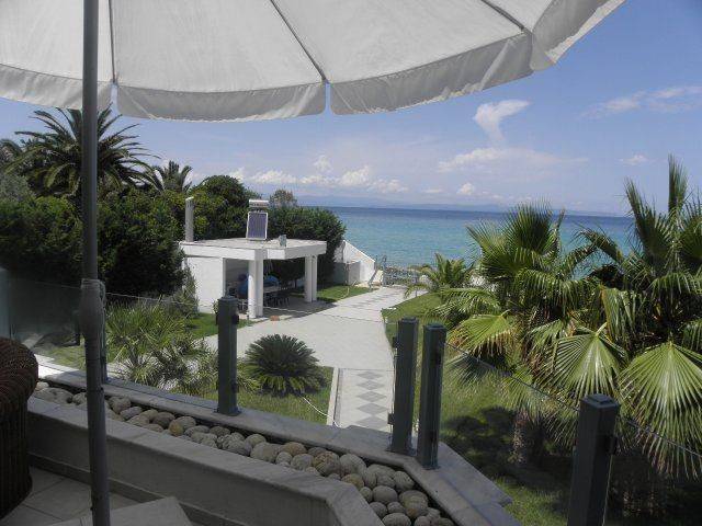 Πολυτελής βίλα πρώτη στην θάλασσα στην περιοχή του Πολυχρόνου Χαλκιδικής. Η κατοικία έχει εμβαδόν 450 τ.μ. περίπου αποτελείται από τρία επίπεδα και διαθέτει στο ισόγειο σαλόνι με τζάκι-κουζίνα,δύο δωμάτια με μπάνιο,βεράντα με άμεση πρόσβαση στον κήπο,στο πρώτο επίπεδο είναι το καθιστικό με τζάκι-τραπεζαρία,κουζίνα,δωμάτιο,μπάνιο μεγάλη βεράντα με θέα την θάλασσα καθώς και δύο μεγάλα δωμάτια,με το δικό τους μπάνιο το καθ΄ένα. Η βίλα διαθέτει επίσης ανελκυστήρα,στεγασμένο πάρκινγκ,κιόσκι με bbq,κήπο με ωραία διαμορφωμένο,καταπληκτική παραλία.Για περισσότερες πληροφορίες σχετικά με το ακίνητο καθώς και για την υπόδειξη του παρακαλώ επικοινωνήστε μαζί μας. Απόσταση από θάλασσα