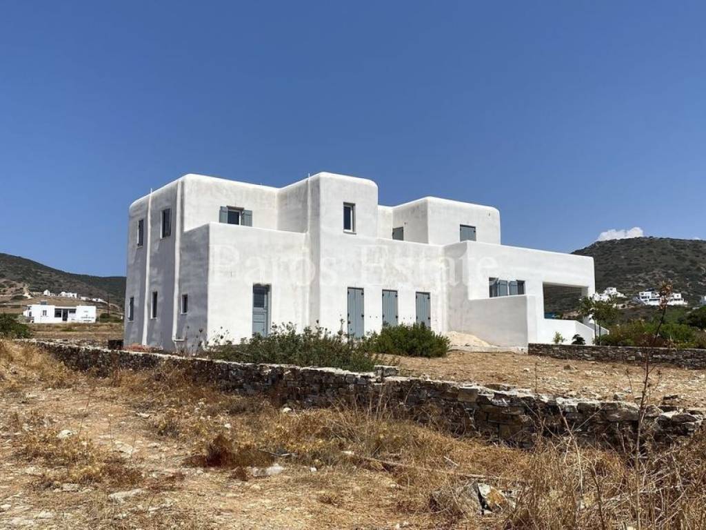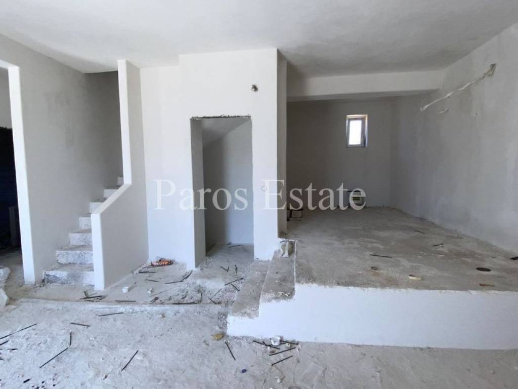 In Agios Georgios Antiparos, just 330 meters from the sea, two level house 146,33m² with basement storage room 47,52m² on lot 520m². The property consists of 3 levels. On the ground floor 94,70m² bright spacious living-dining area, kitchen, 2 bedrooms and bathroom. Through the internal staircase on the first floor 51,63m² another bedroom with bathroom. In the basement 47,52m² storage room. The residence is airy and bright with spacious areas. It overlooks the bay of Agios Georgios and Despotiko. It has energy efficient frames and offers the possibility to issue a license for a swimming pool. The property is being sold in the existing construction stage, while floors, kitchen and bathrooms are missing. The house is attached to another house on a lot of total area 1040m².